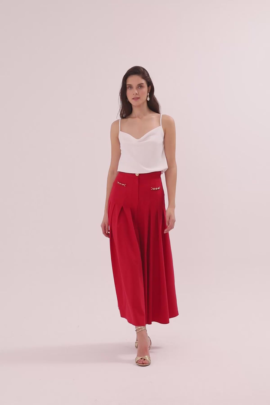 Aksesuar Detaylı Bol Kesim Saten Pantolon