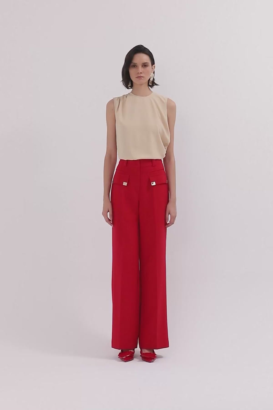 Aksesuar Detaylı Kısa Ceket Ve Palazzo Pantolonlu Takım