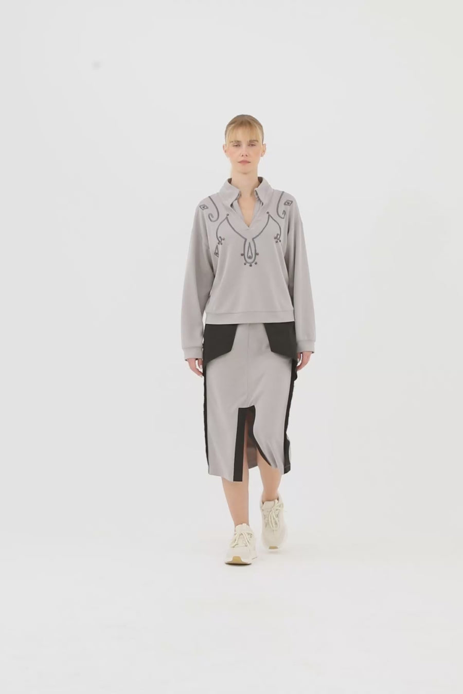 Aksesuarlı Bayet Detay Dik Yakalı Bluz