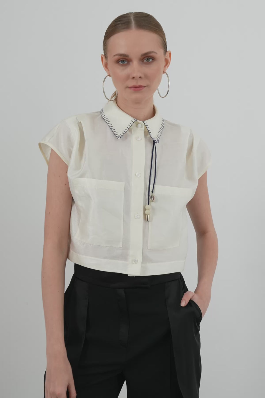 Aksesuarlı Belden Ve Boyundan Bağlanabilir Bluz