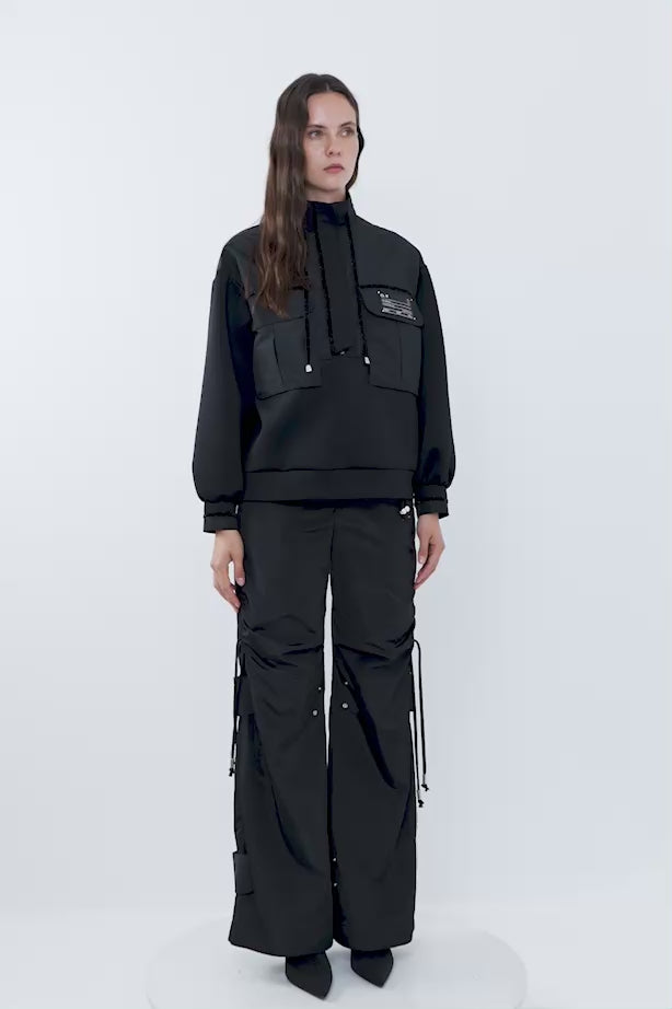 İşlemeli Düğme Detaylı Dik Yaka Scuba Bluz