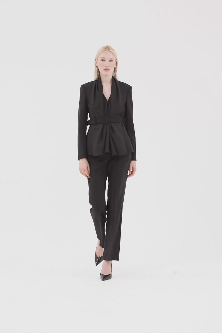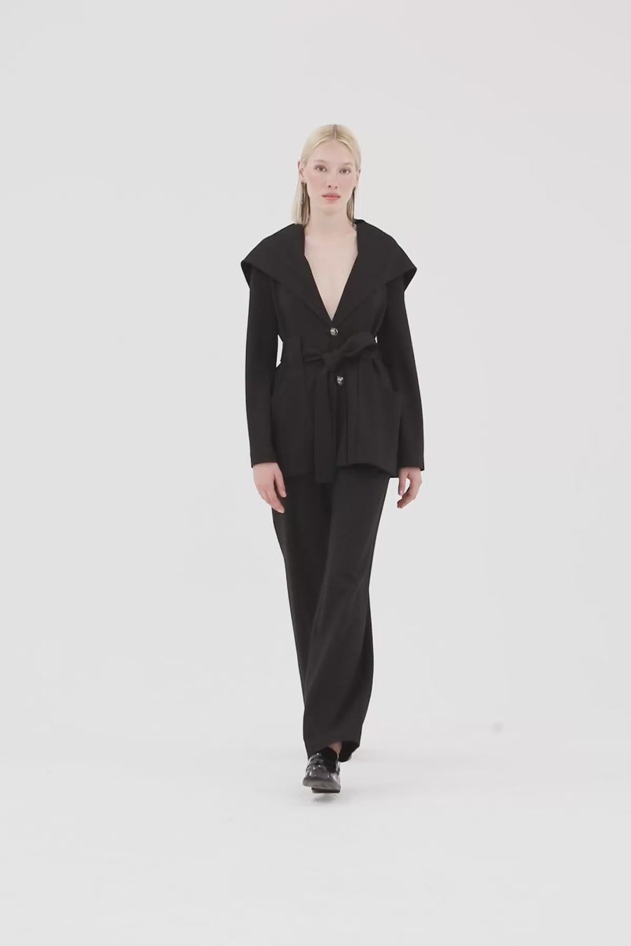 Bant Detalı Ceket Ve Pantolonlu Takım