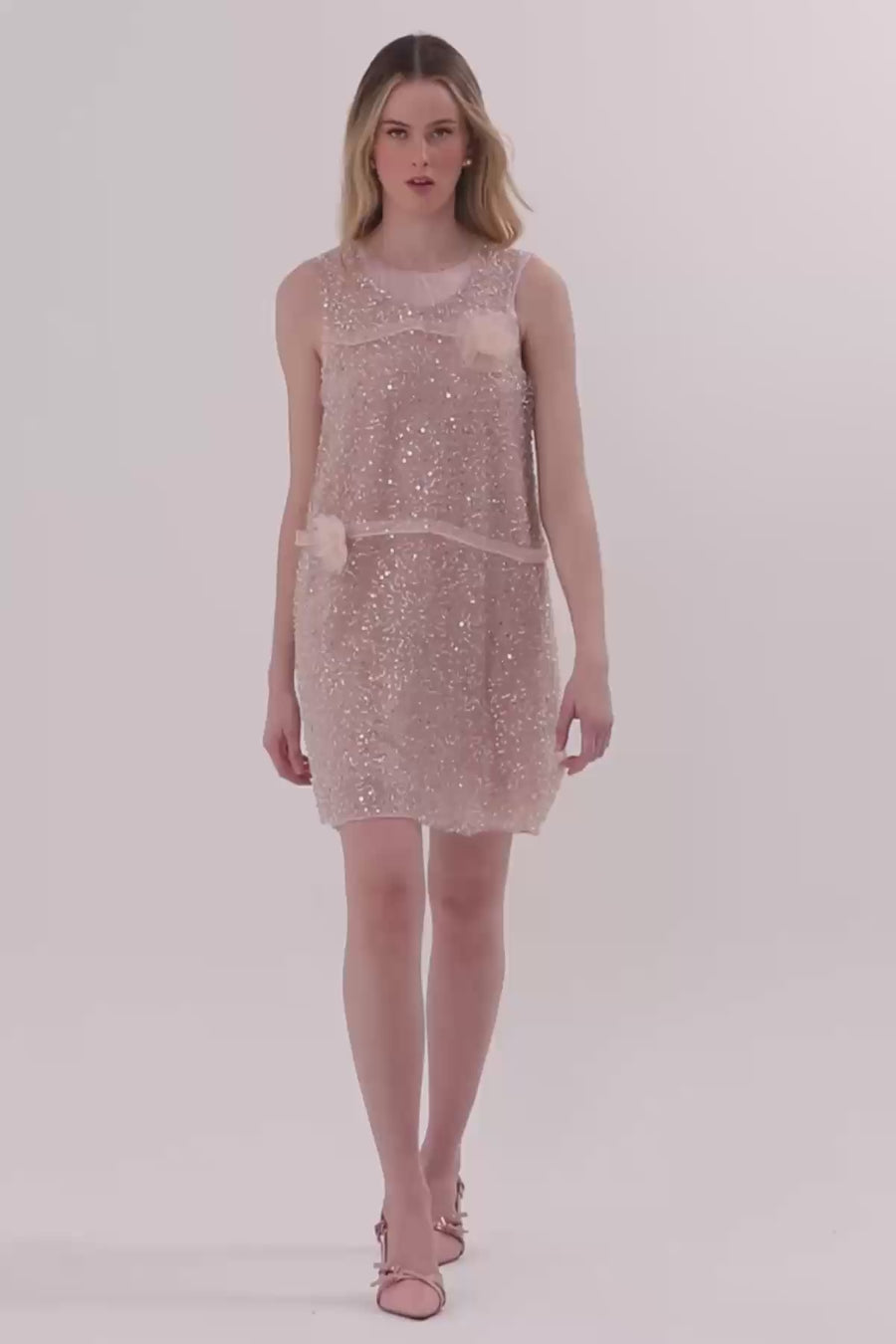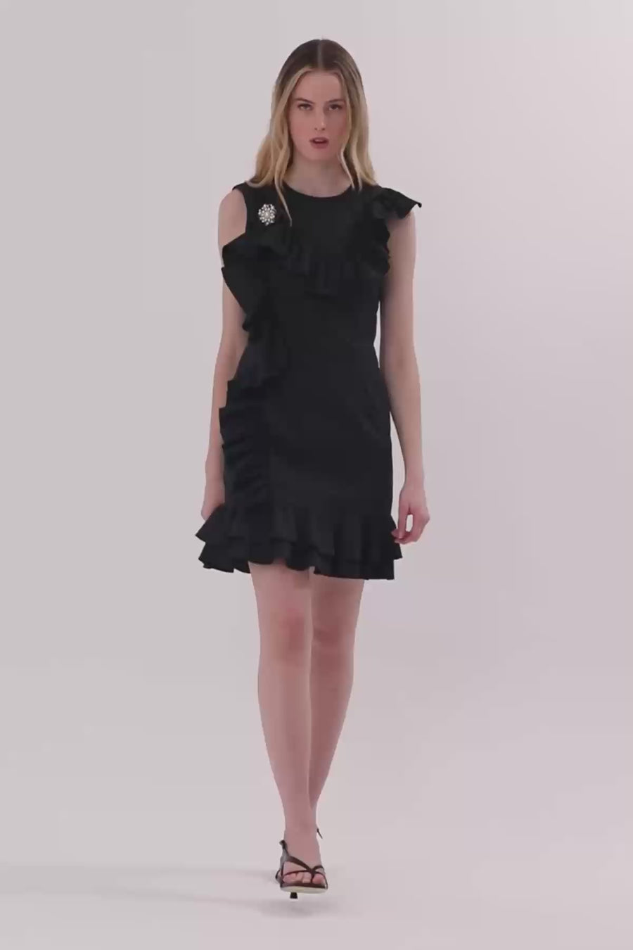 Yakası İşlemeli Dantel Kumaş Kısa Elbise