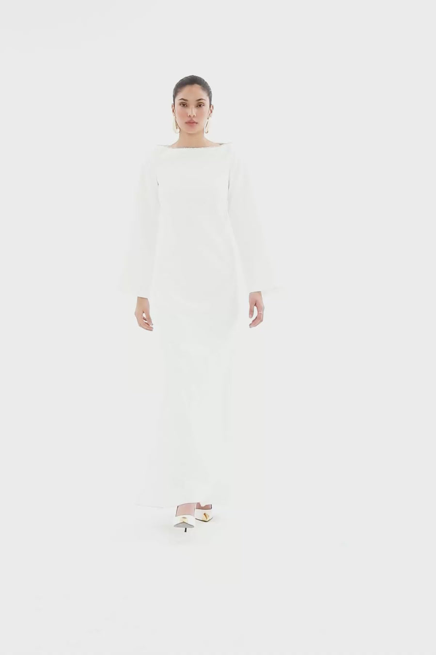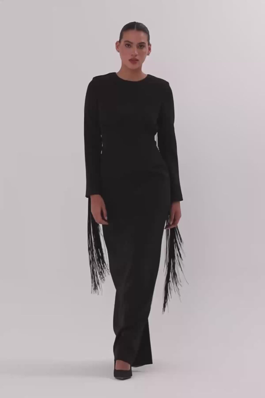 Sırtı Pencere Detaylı Uzun Kemik Elbise