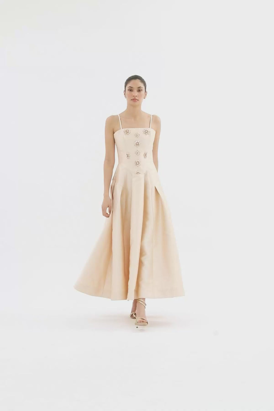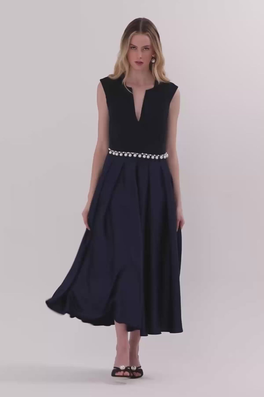 Önü Yırtmaçlı İşlemeli Uzun Elbise