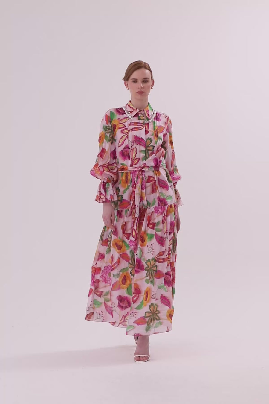 Gömlek Yakalı Robası İşlemeli Uzun Elbise