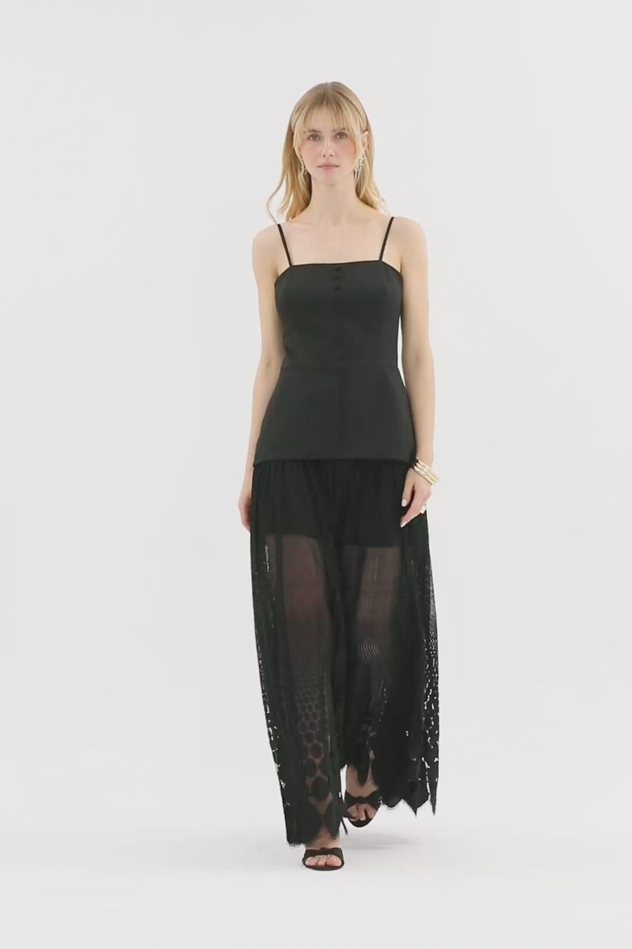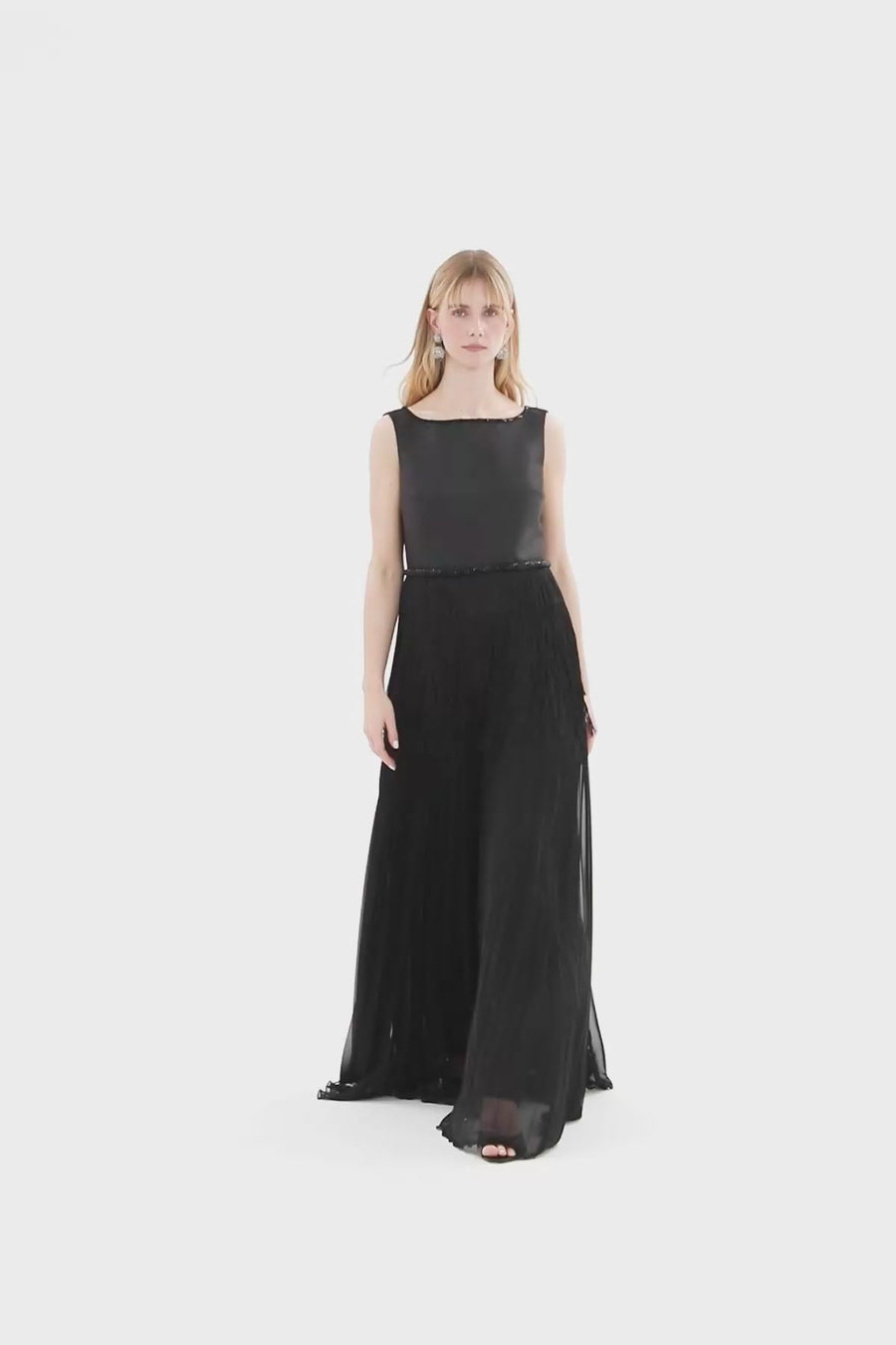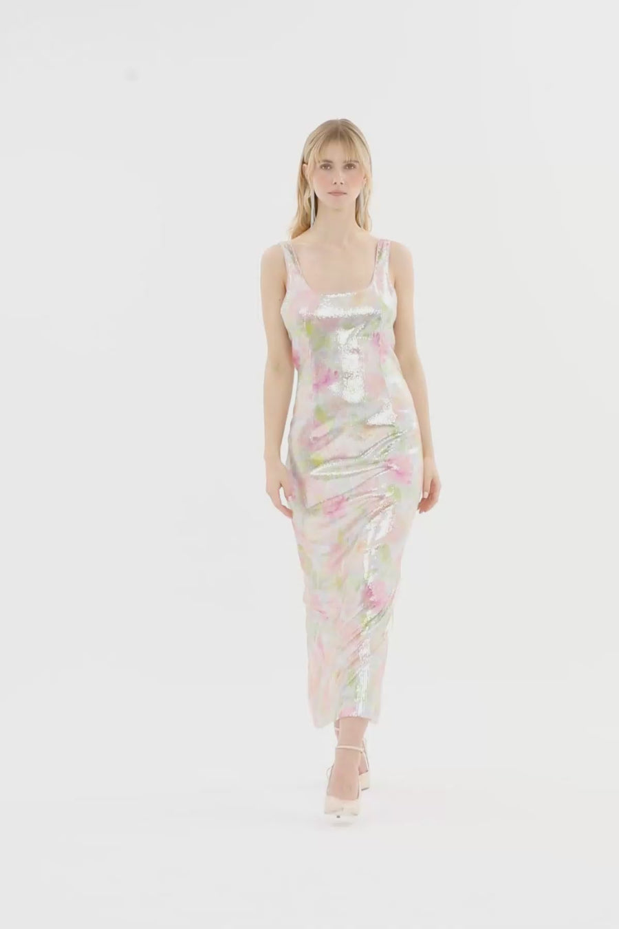 Arkadan Yırtmaçlı Askılı Payet Elbise