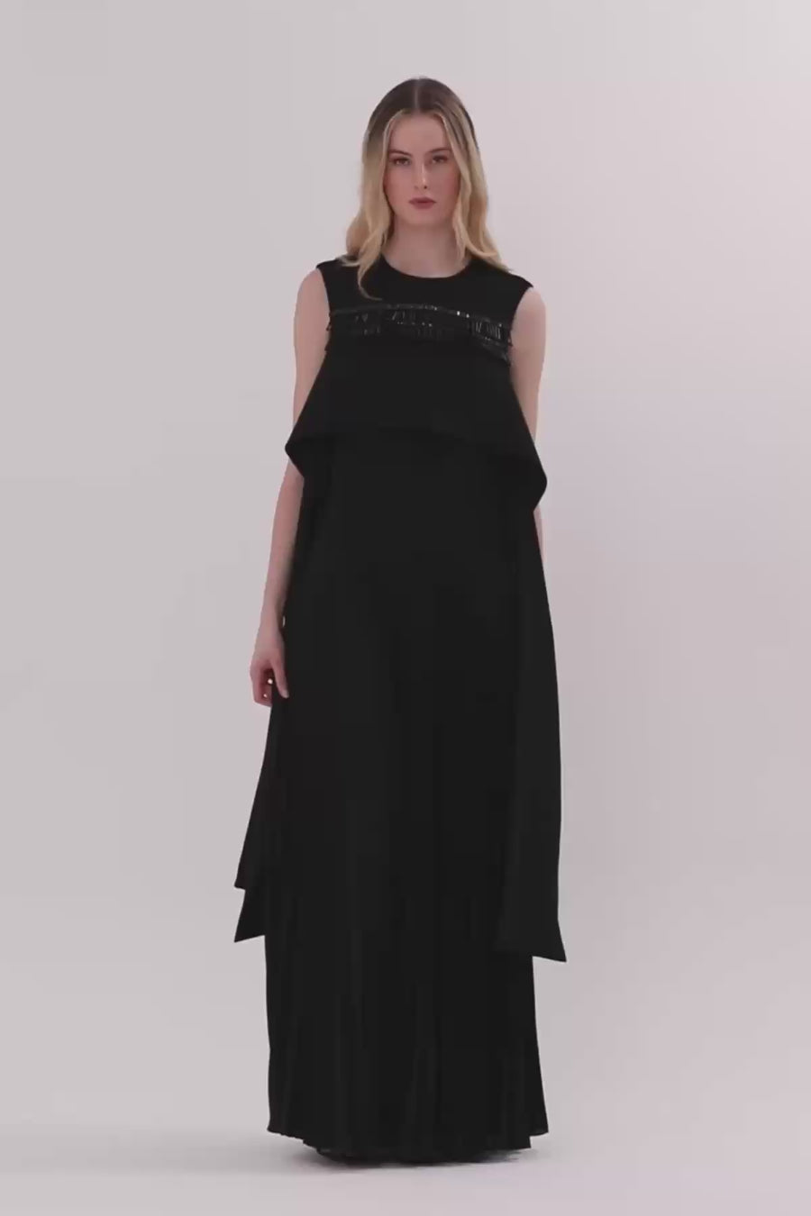 İşlemeli Pelerin Detaylı Uzun Elbise