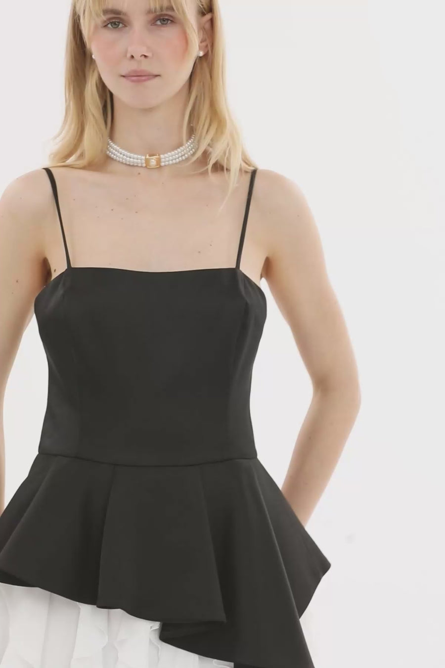 Sıfır Kol Üst Beden Büzgülü Eteği Volan Detaylı Bilek Boy Elbise