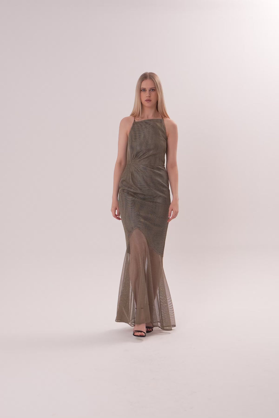 Zincir Detaylı Asimetrik Kesim File Elbise