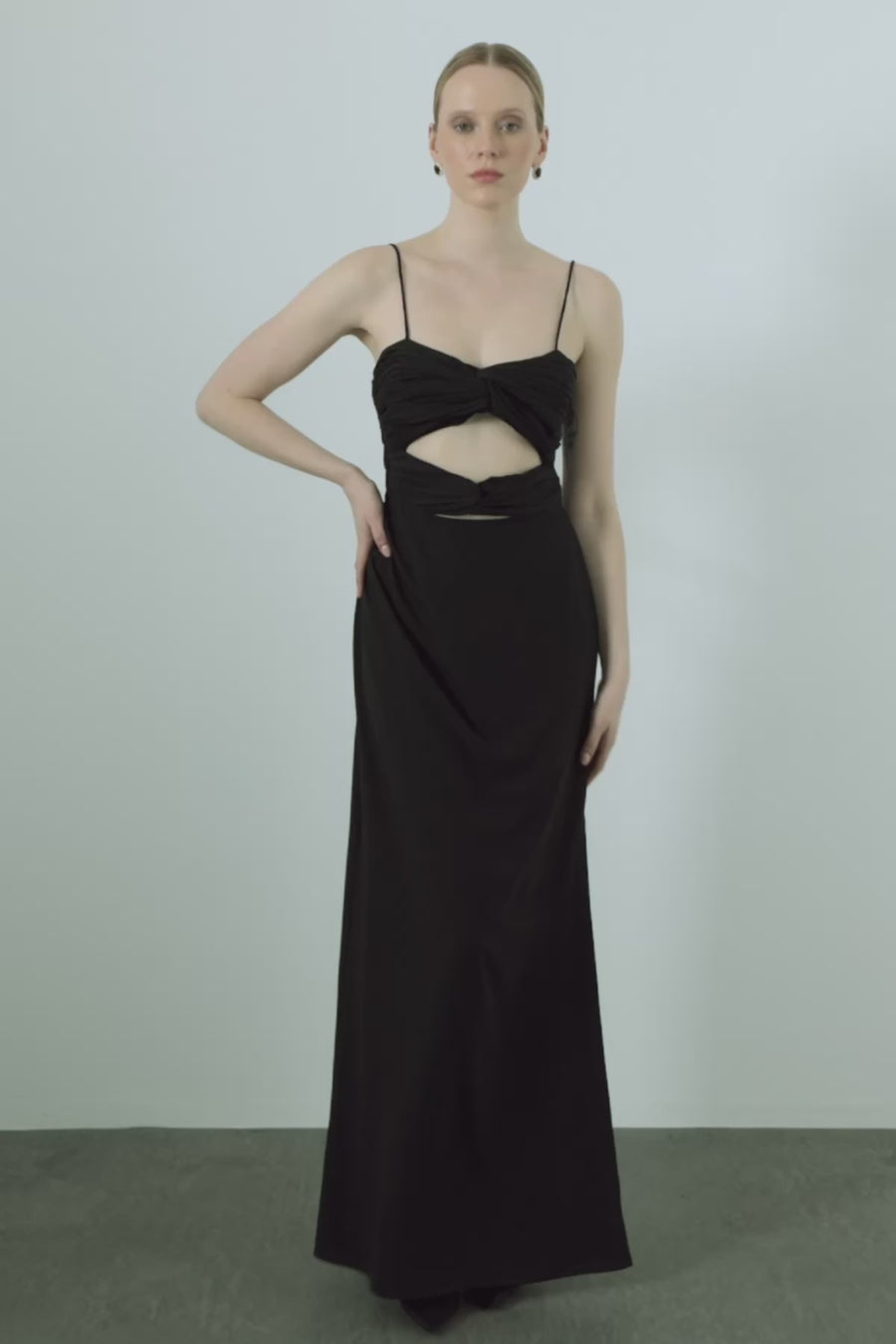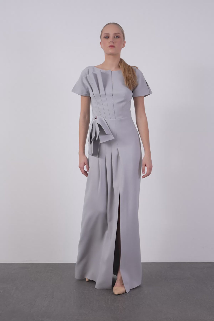 Büzgülü Yakası İşleme Detaylı Eteği Kloş Abiye Elbise