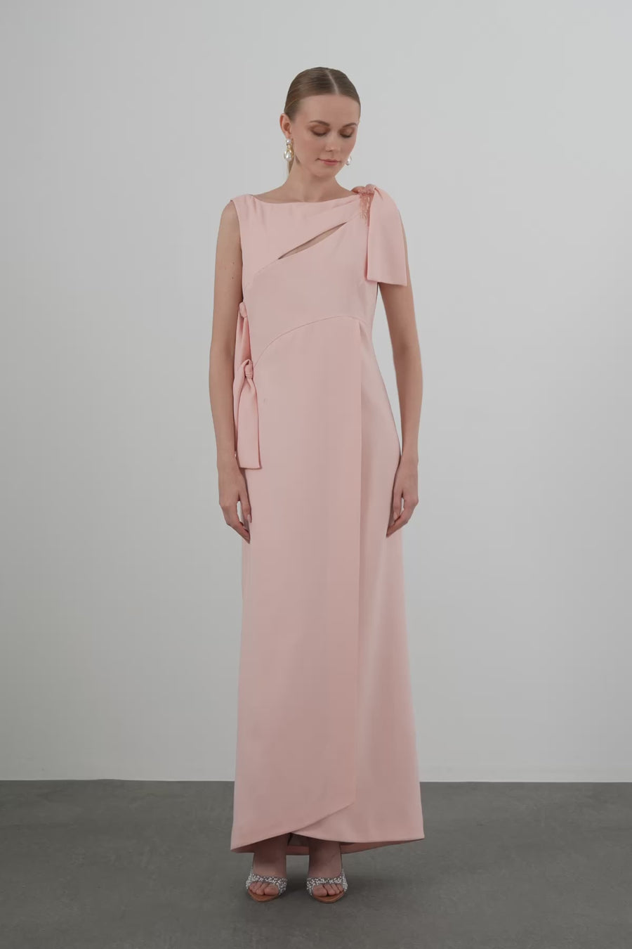 Beli Piliseli Ve İşleme Detaylı Eteği Kloş Abiye Elbise