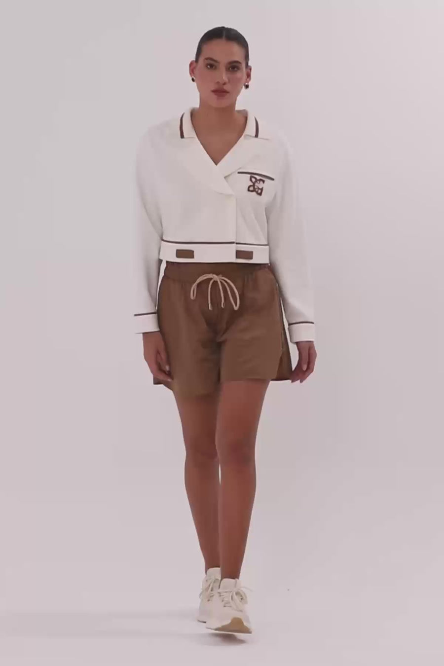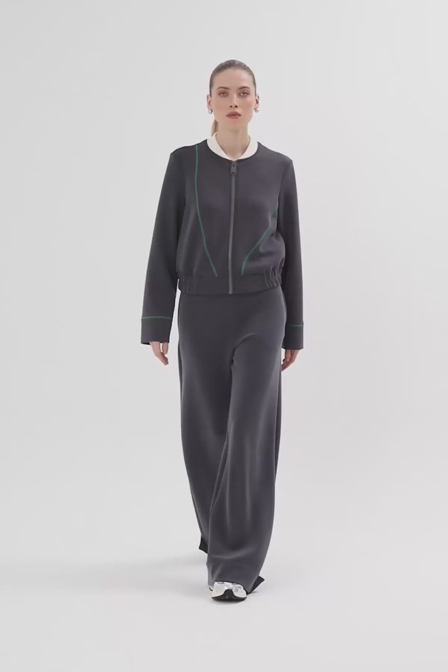 Kruvaze Yaka Kontrast Dikişli Ceket
