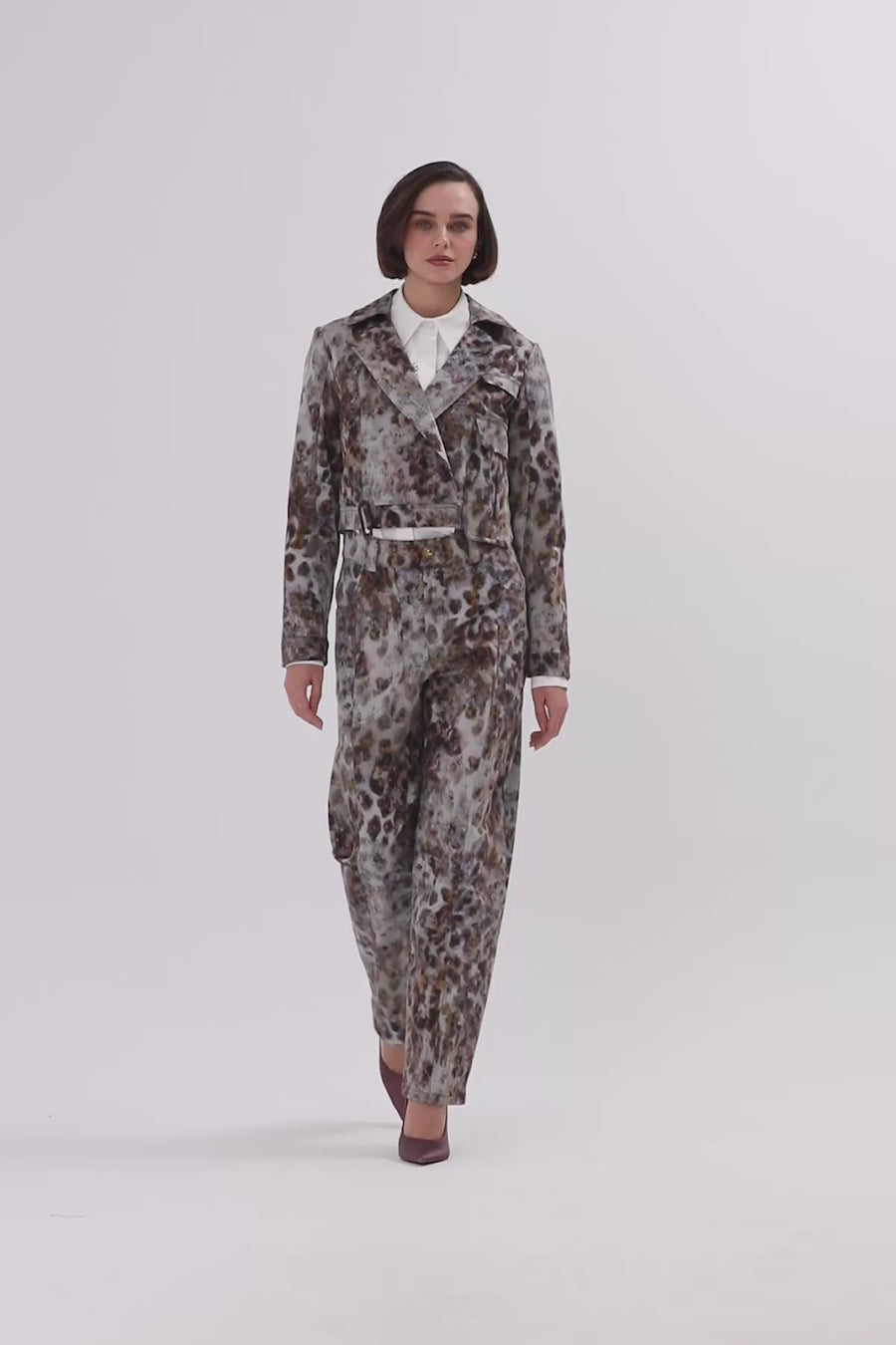 Gömlek Yakalı Yanlardan Ayarlanabilir Bağcıklı Desenli Ceket