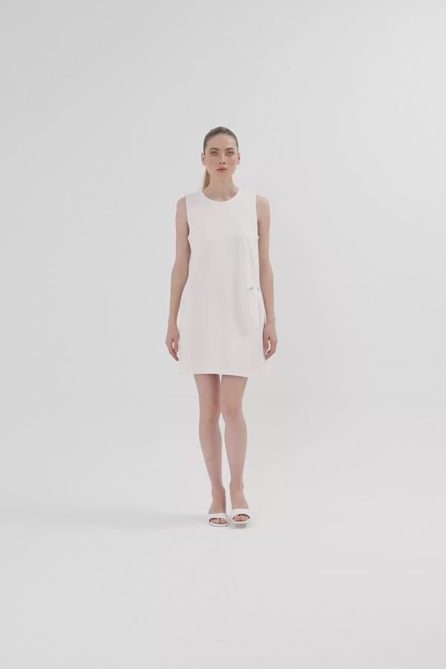 Yuvarlak Yaka Cepli Kısa Kollu Elbise