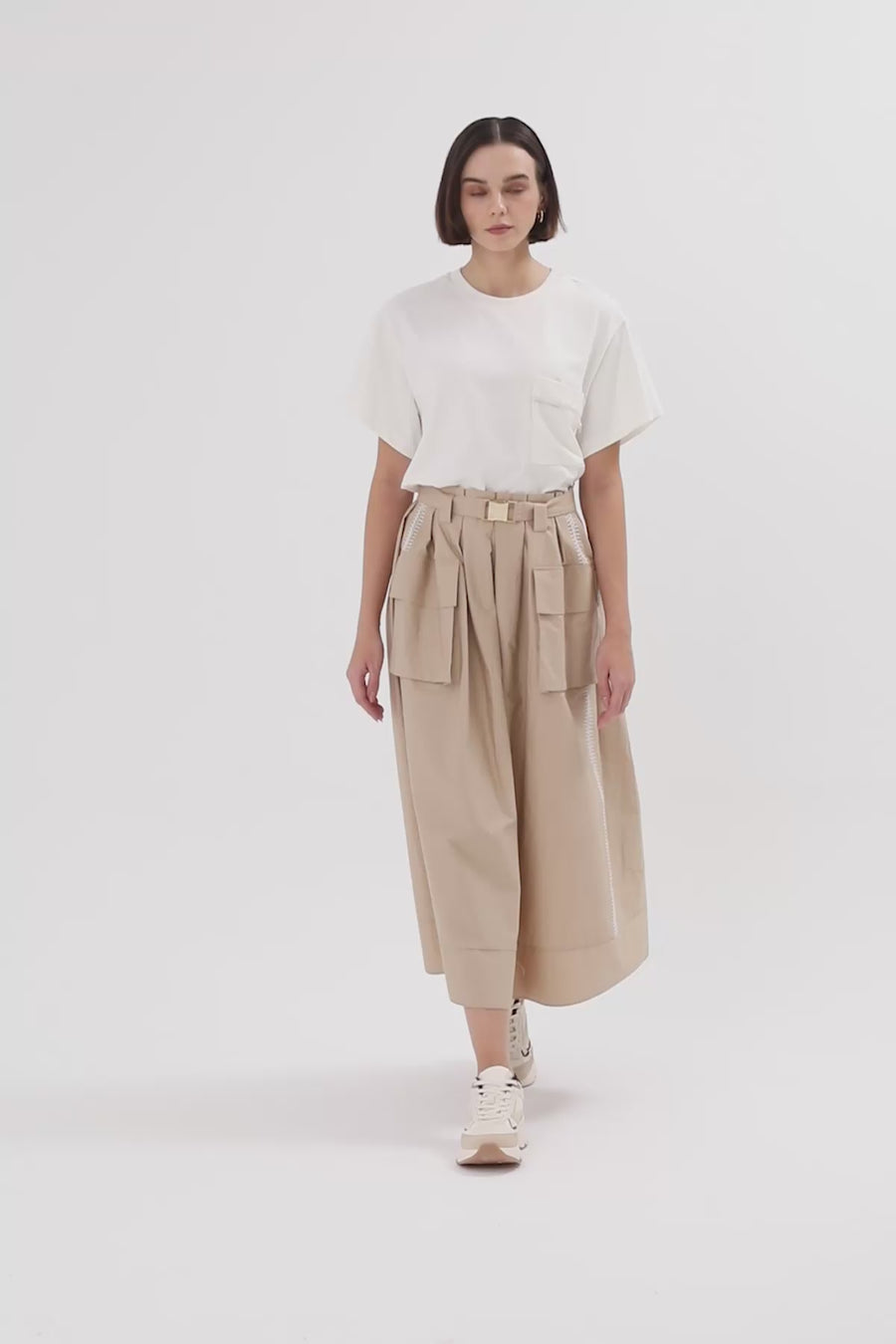 Beli Kuşaklı Pileli Midi Etek