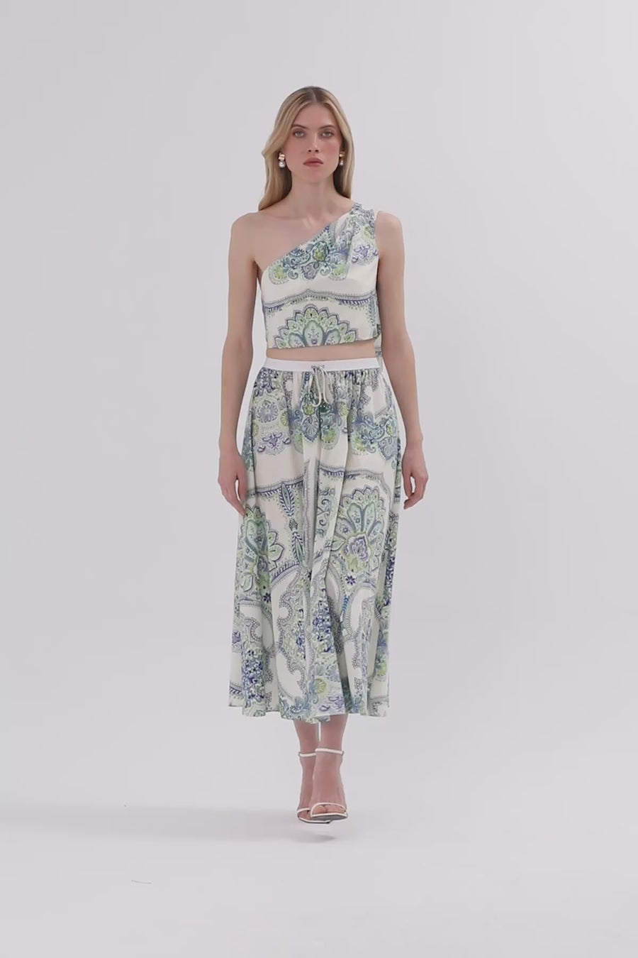 Kordon Detaylı Desenli Uzun Etek