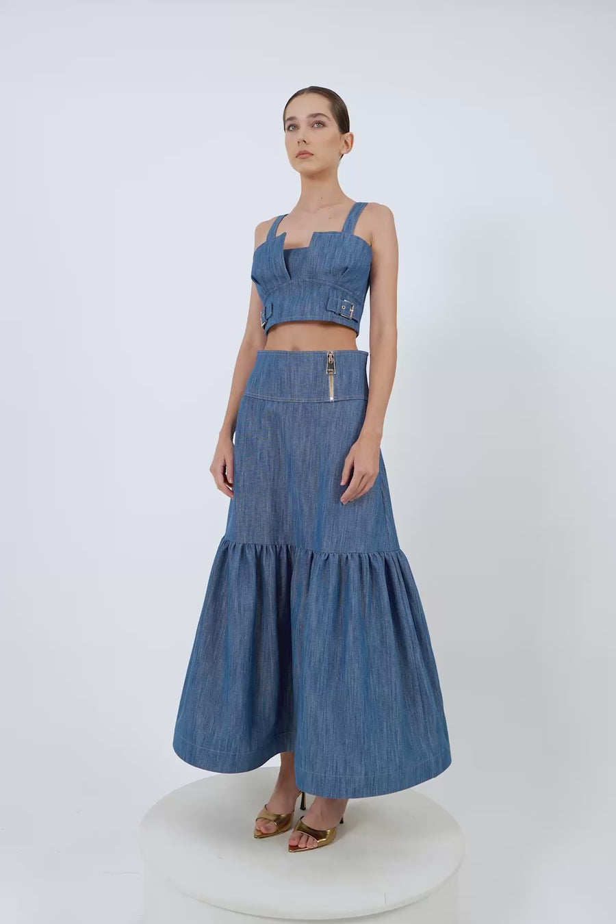 Arkası Fermuarlı Denim Uzun Etek