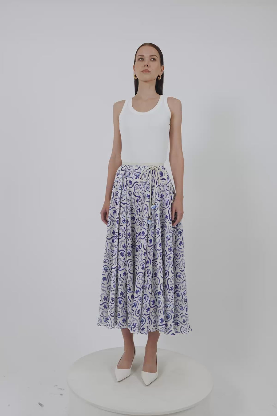 Beli Kemerli Desenli Uzun Kloş Etek