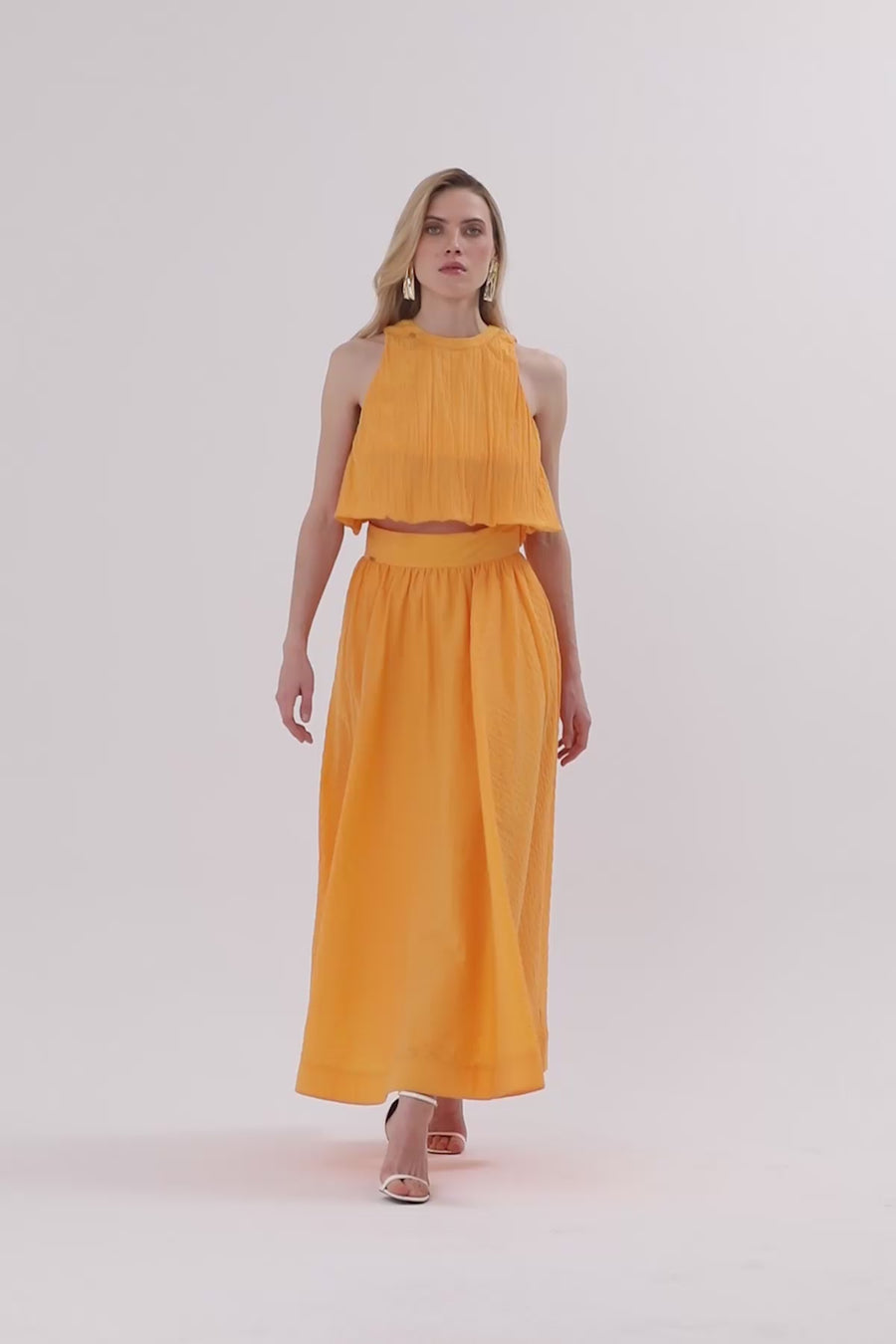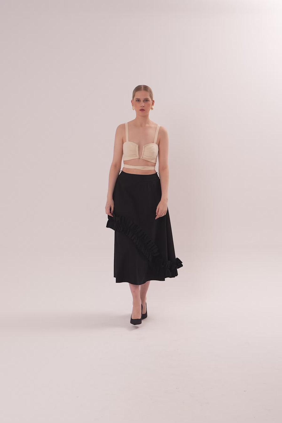 Plise Detaylı Etek Ucu Fırfırlı Uzun Etek
