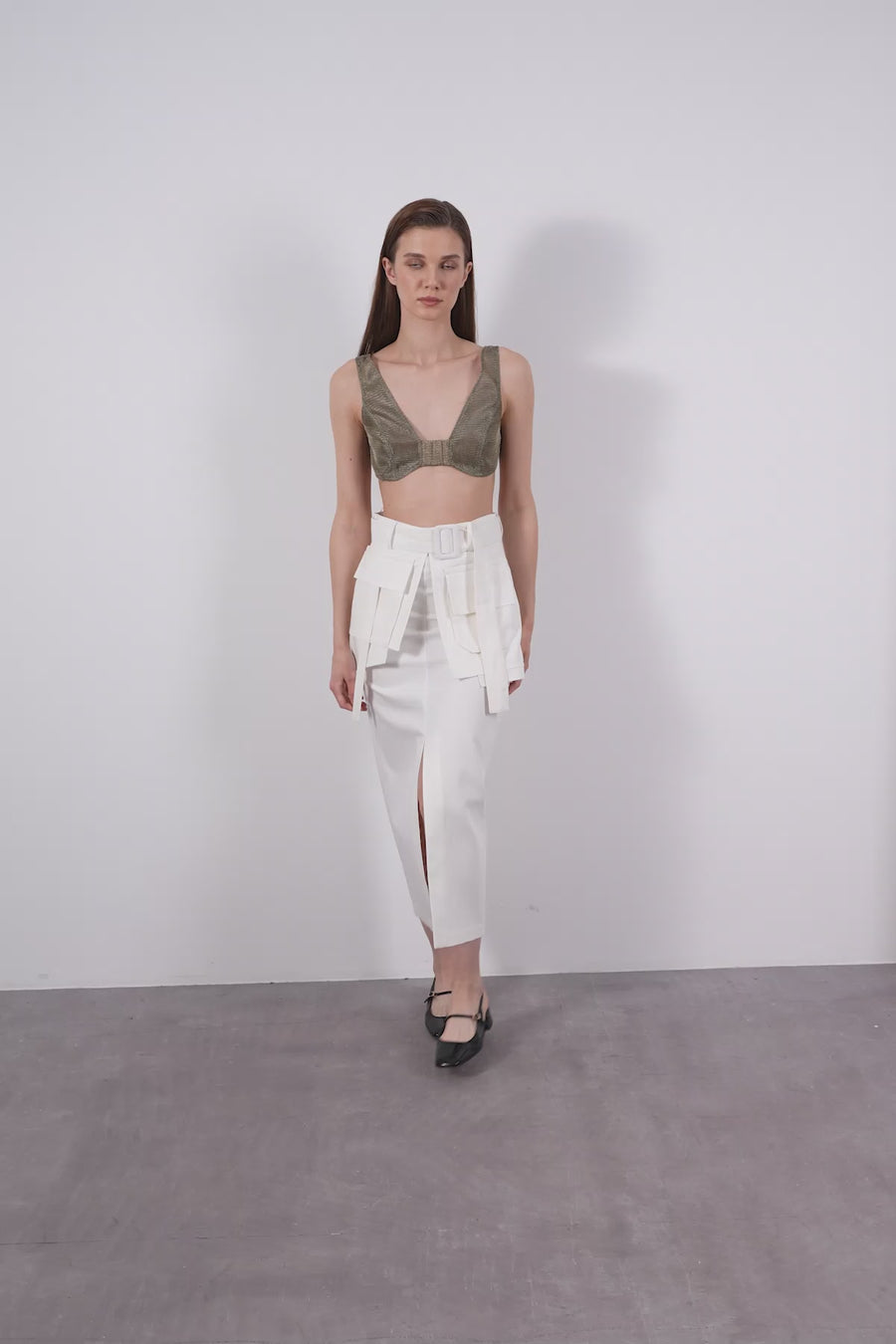 Bağlama Detaylı Uzun Fermuarlı Etek