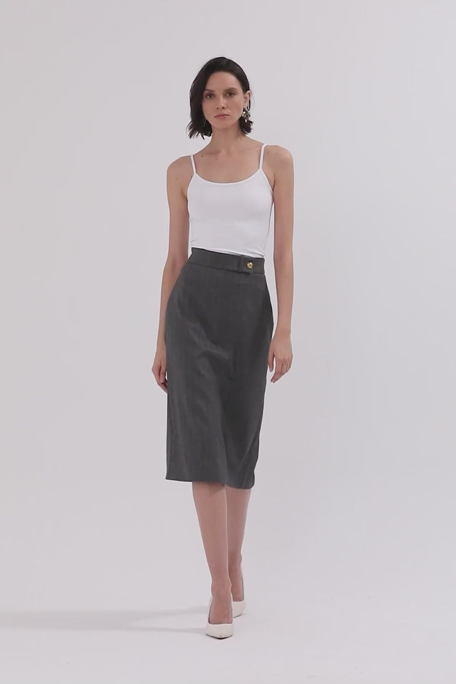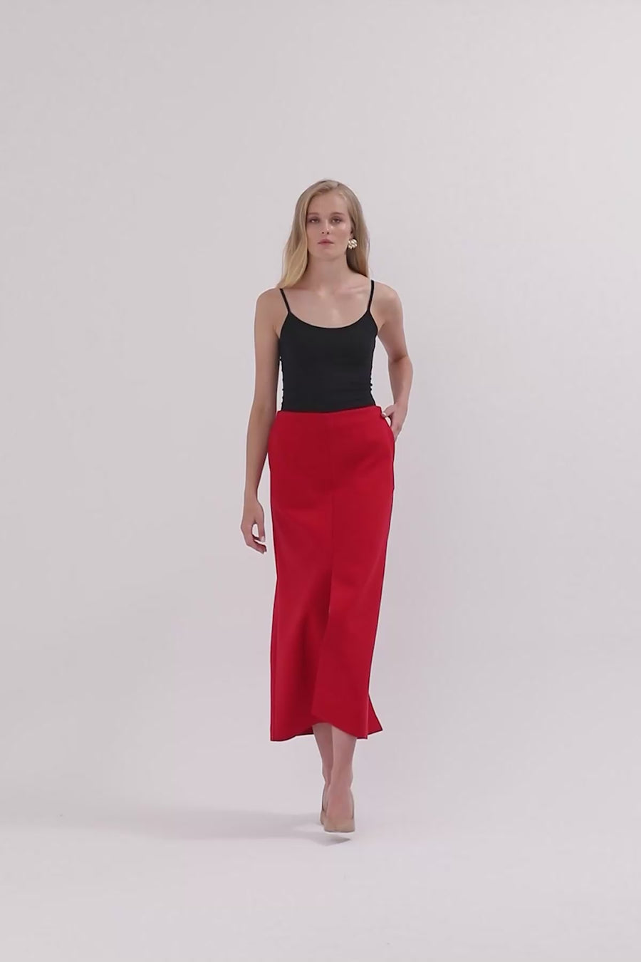 Arkası Yırtmaçlı Midi Tüvit Kumaş Etek