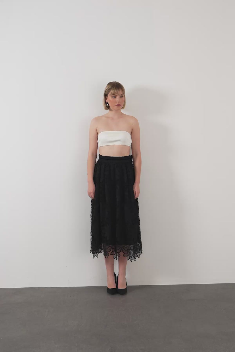 Fırfır Detaylı Bağcık Ucu İşlemeli Beli Lastikli Uzun Etek