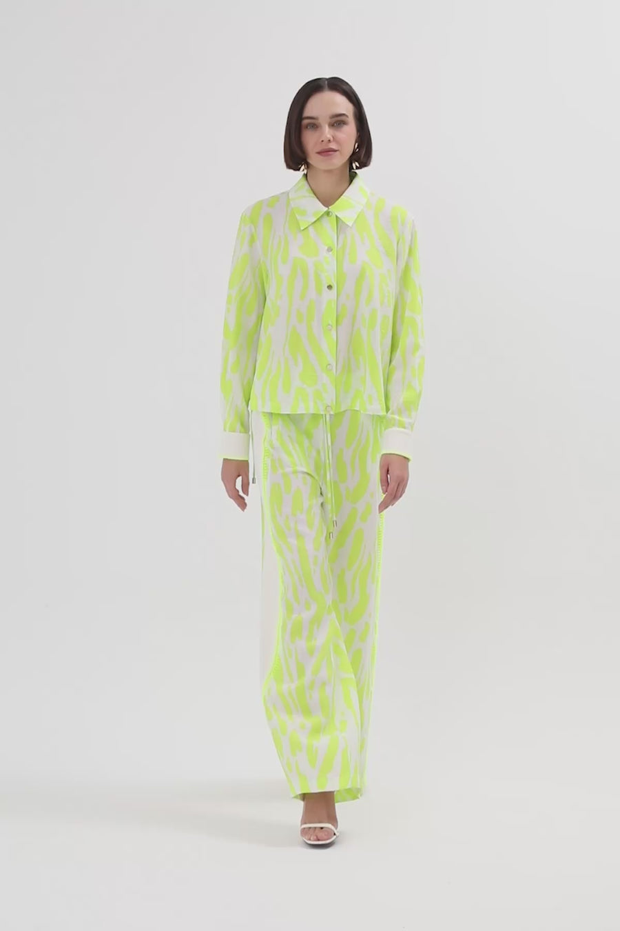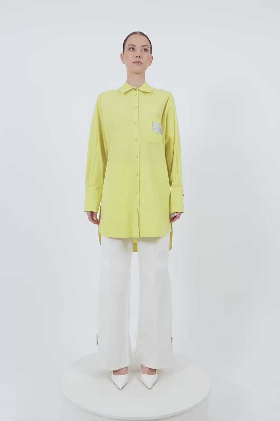 Uzun Kollu Gömlek Yakalı Neon Bluz
