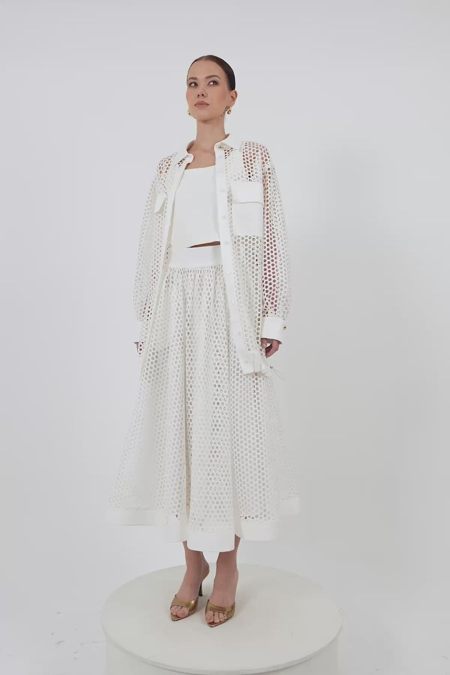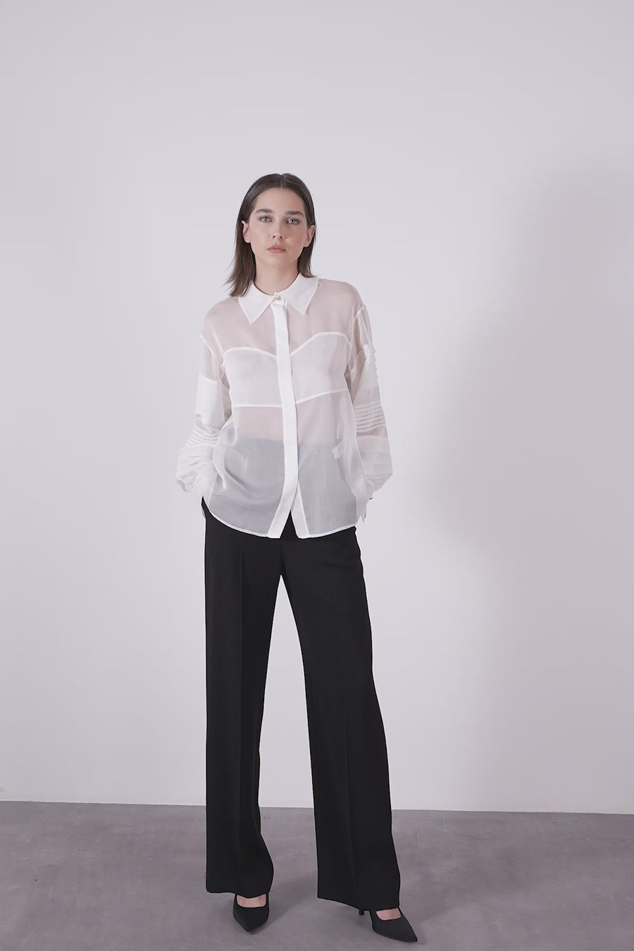 Kolları Nevrür Detaylı Transparan Şifon Gömlek