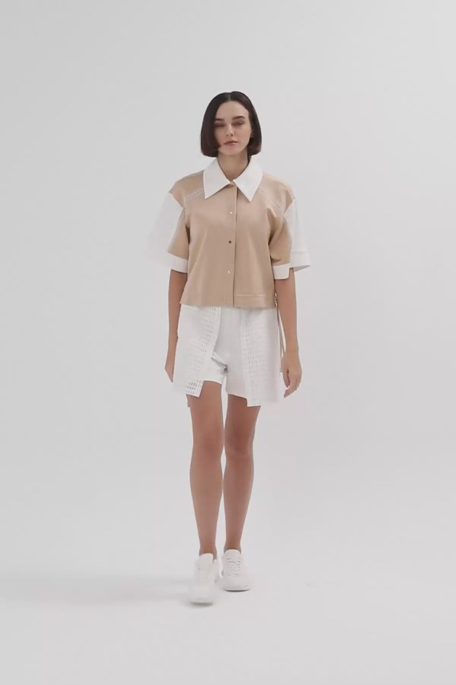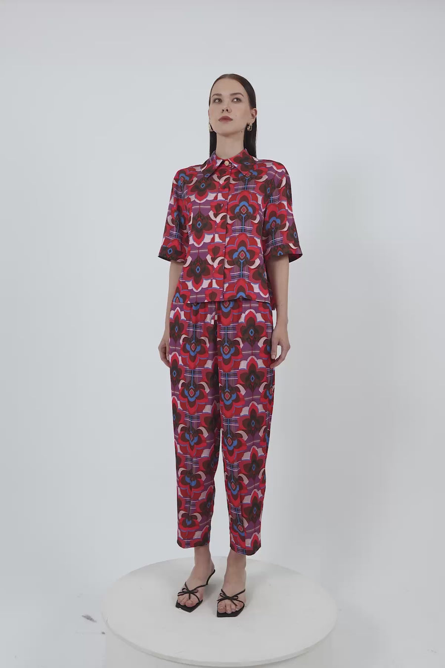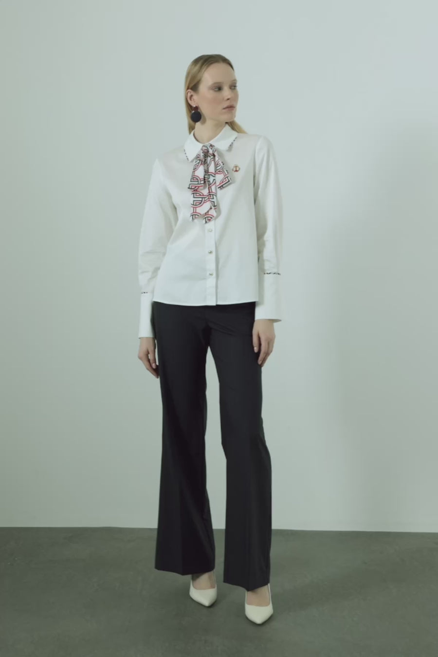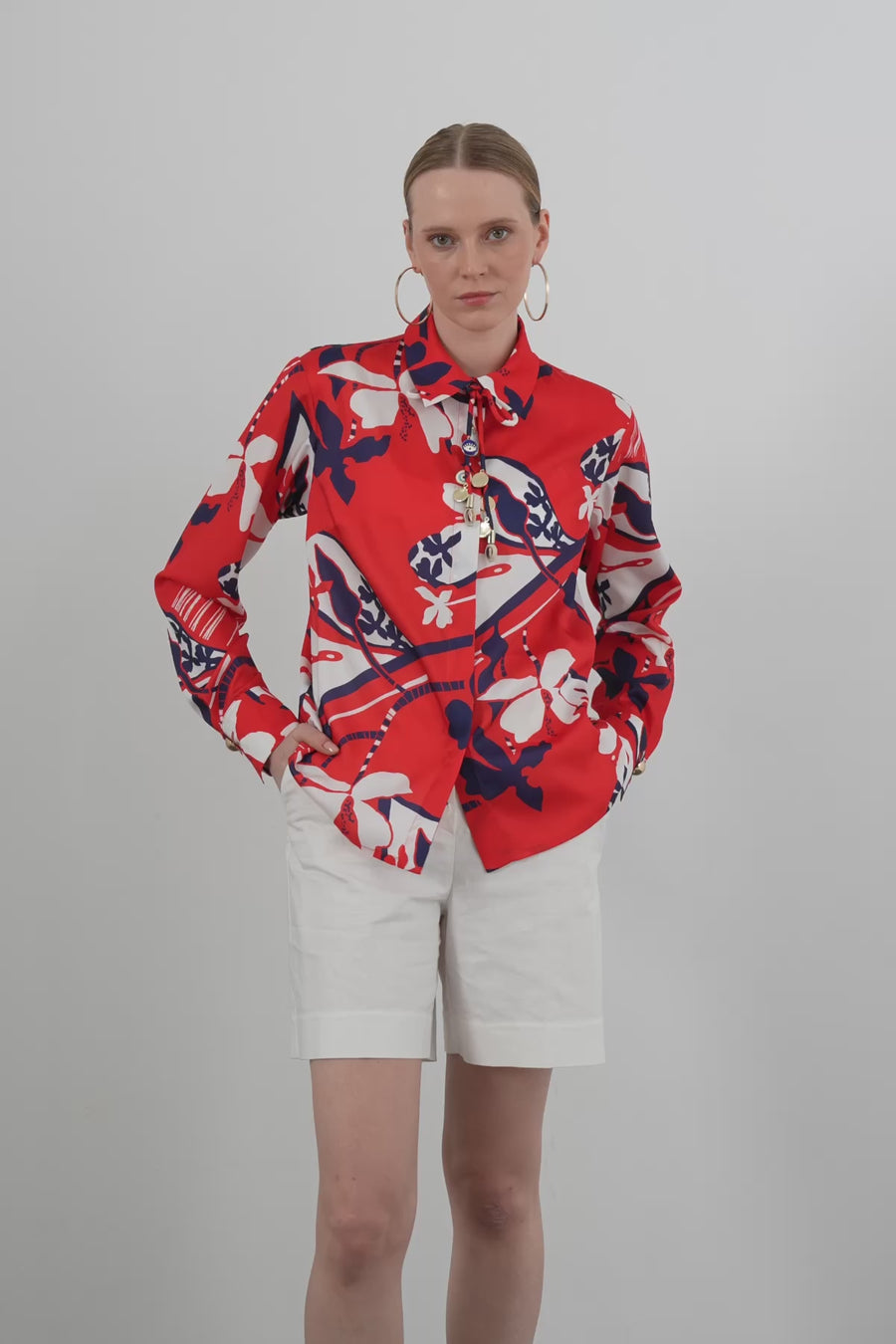 Boncuklu Kordon Detaylı Desenli Gömlek