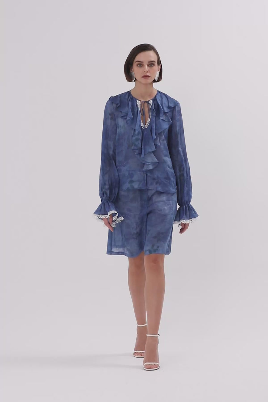 Boyundan Bağlamalı Volan Kollu Gömlek