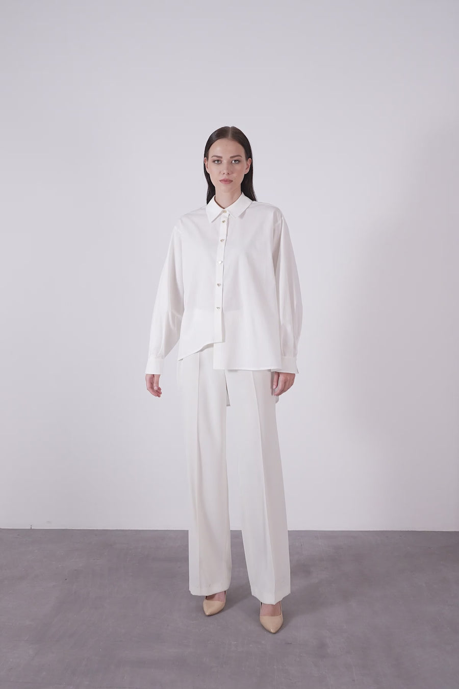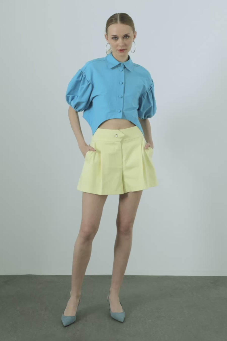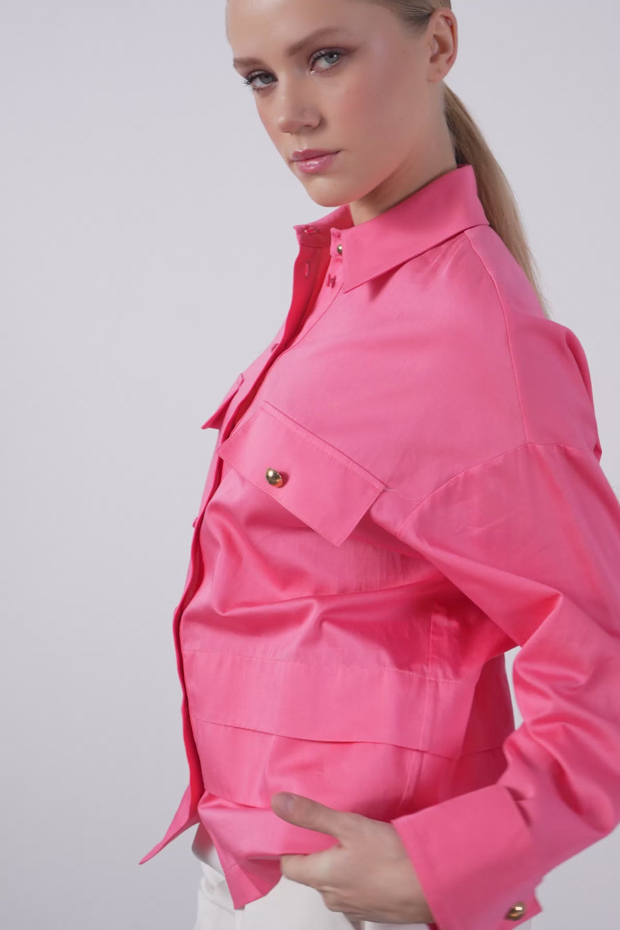 Süs Cep Kapaklı Önden Pilili Metal Düğmeli Pamuk Gömlek