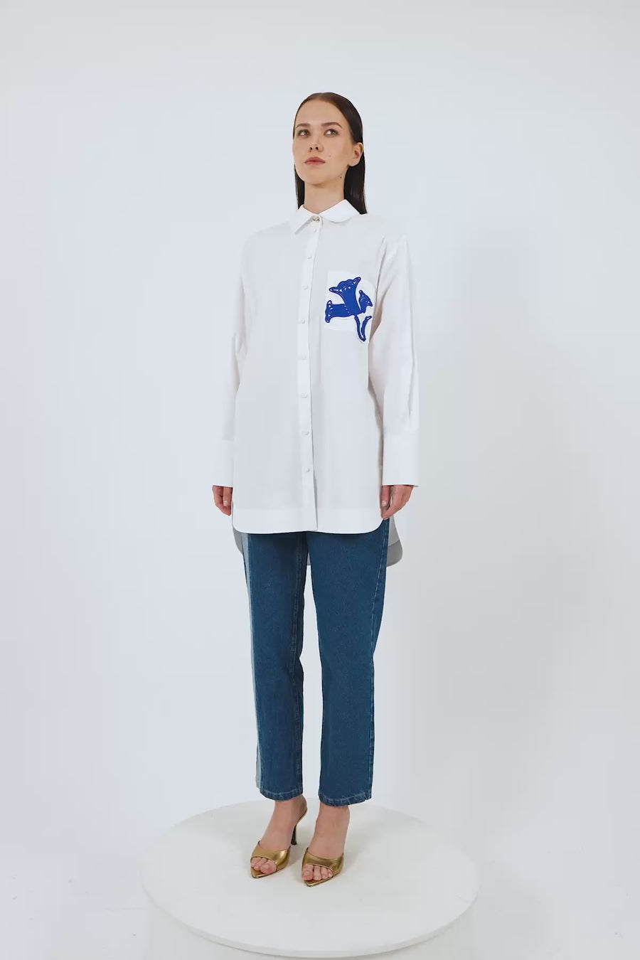 Cep Üstü Boncuk Detaylı Düğmeli Gömlek