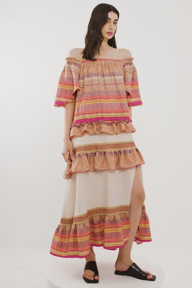 Ön Beden Püsküllü Nakış Detaylı Desenli Oversize Elbise
