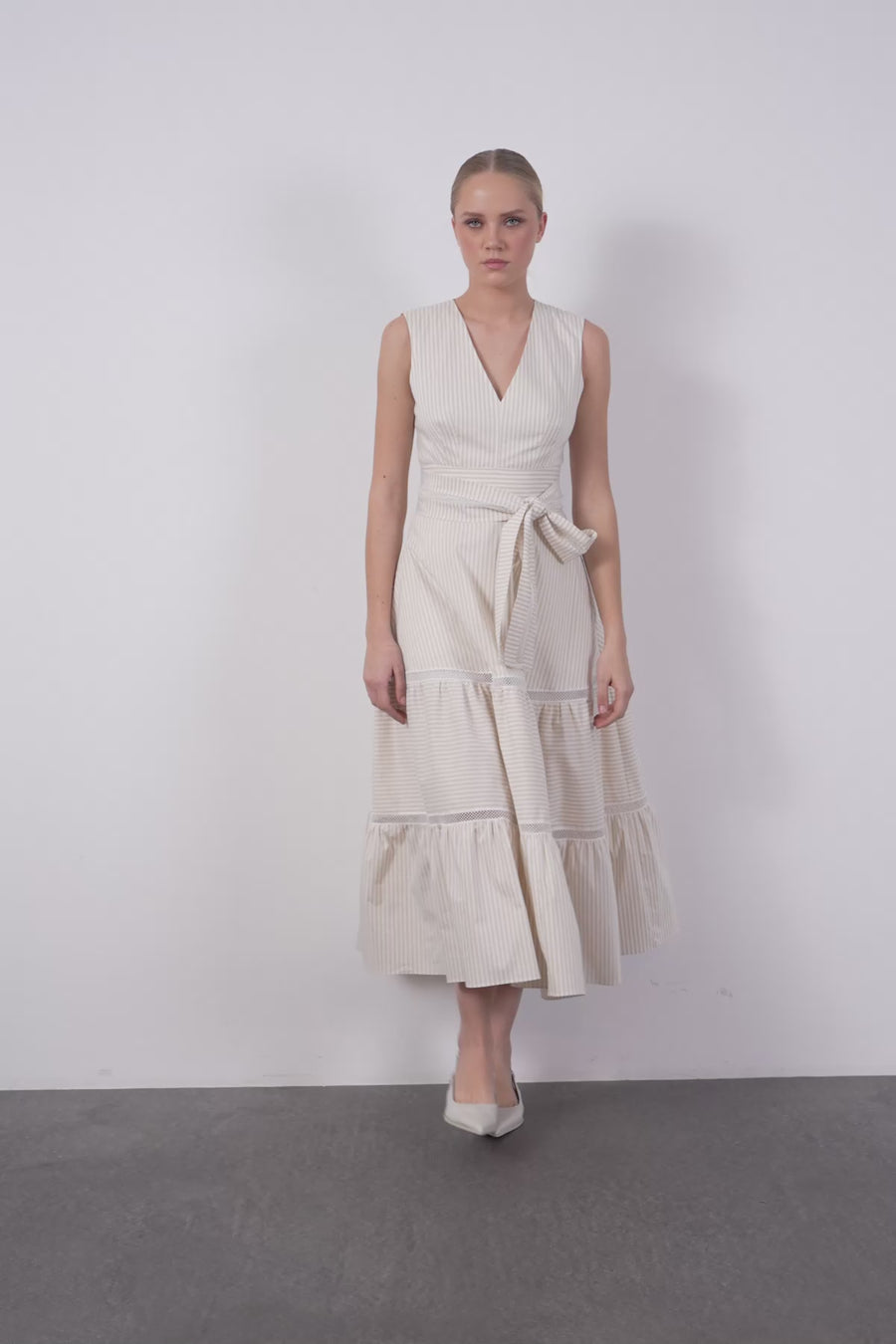 Dantel Detaylı Kolsuz Kuşaklı Poplin Elbise