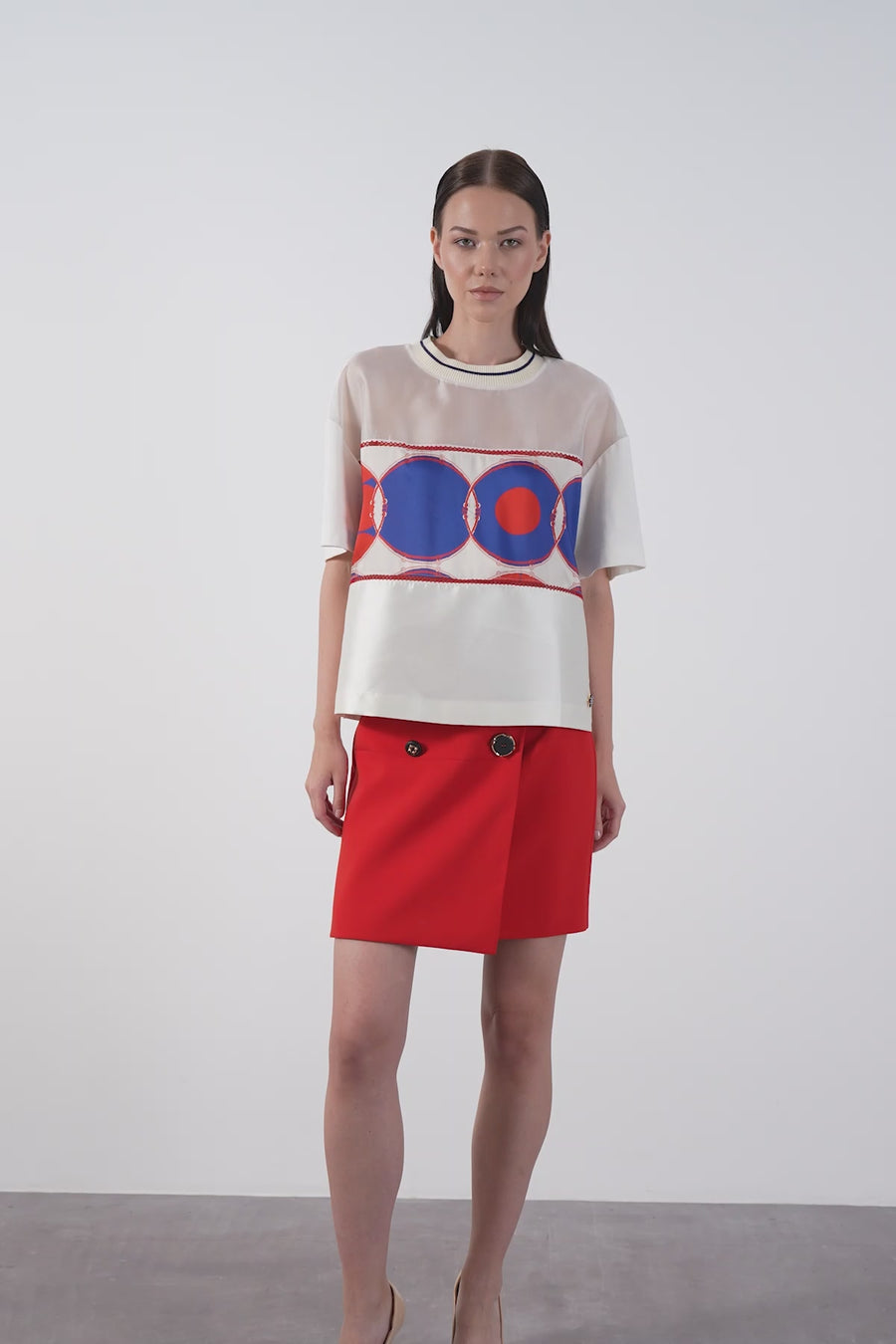 Saten Yüzey Garnili Baskılı İşlemeli Orijinal Bluz