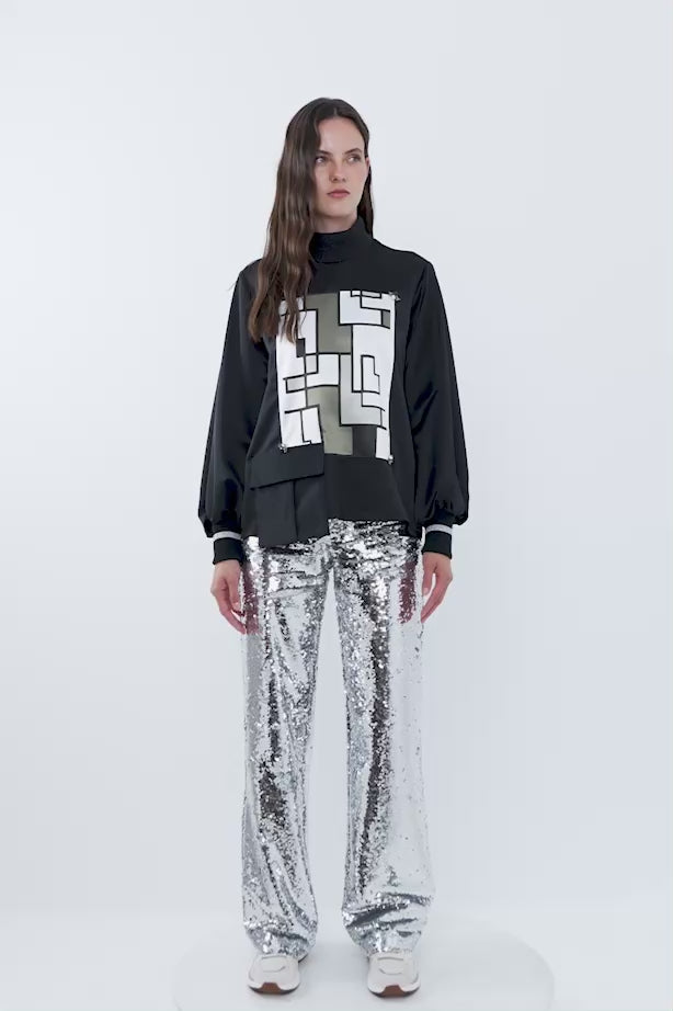 Omuzları Vatka Ve İşleme Detaylı Payetli Bluz