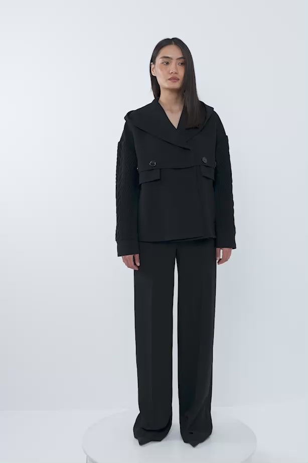 Geniş Kapüşonlu Kol Detaylı Kısa Kaban