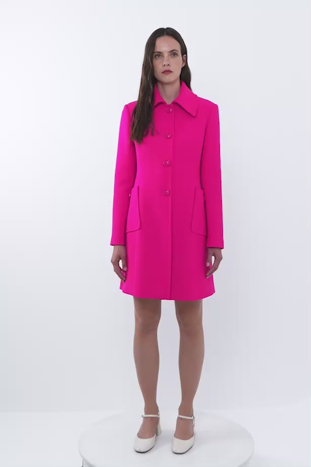 Düşük Omuzlu Kısa Mercan Renk Kaşe Kaban