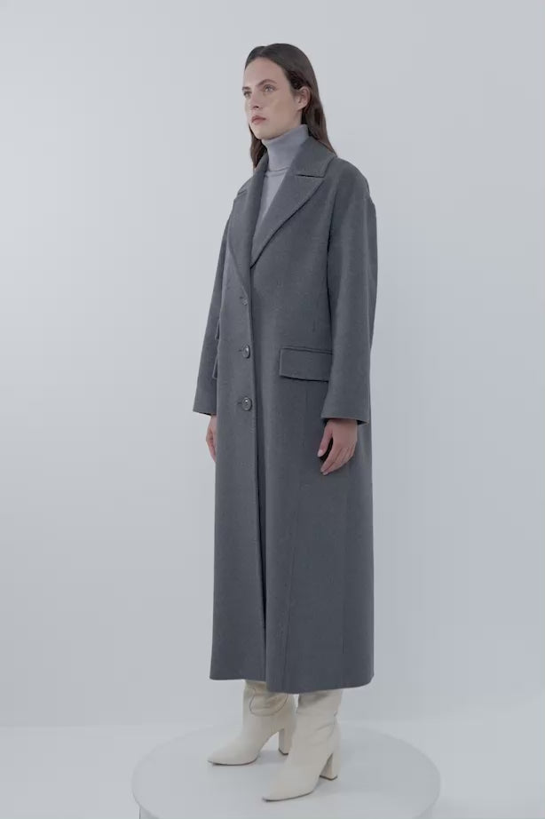 Önü Düğmeli Arkası Yırtmaçlı Midi Boy Kaşe Kaban