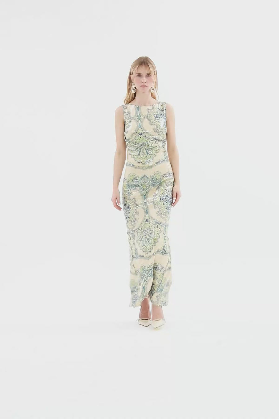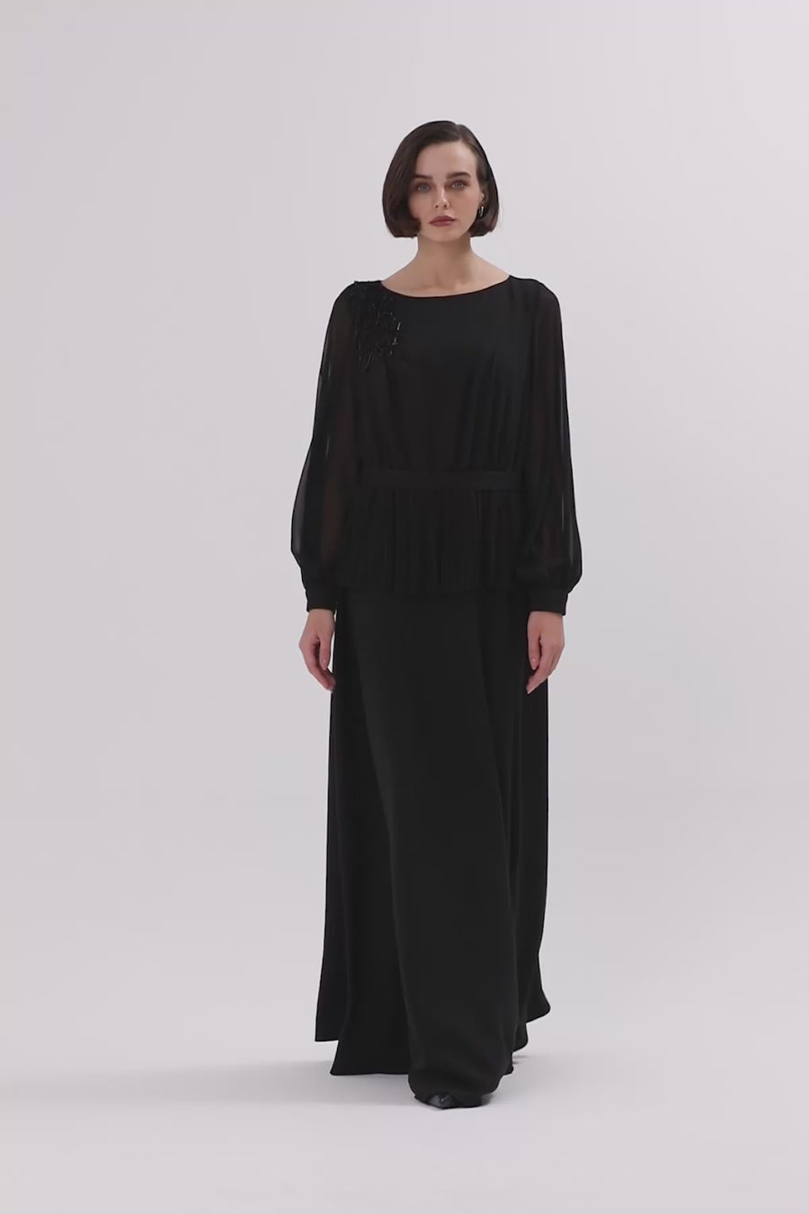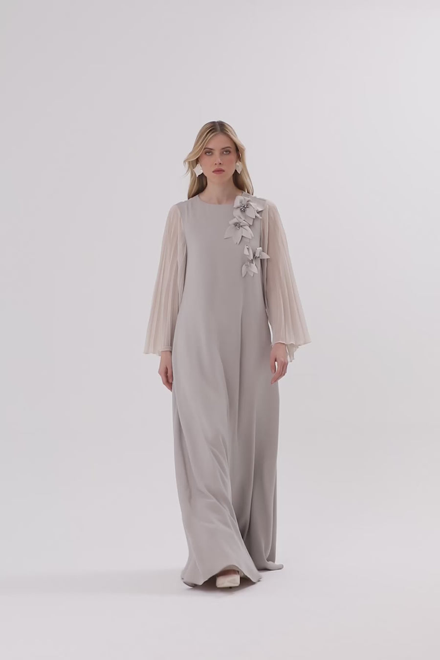 Piliseli Boncuk İşlemeli Uzun Elbise
