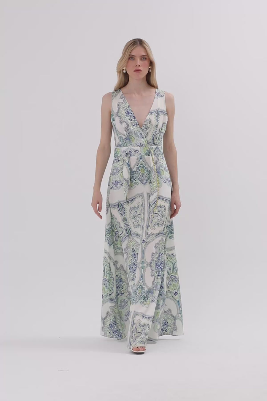 Önü Yırtmaçlı İşlemeli Uzun Elbise