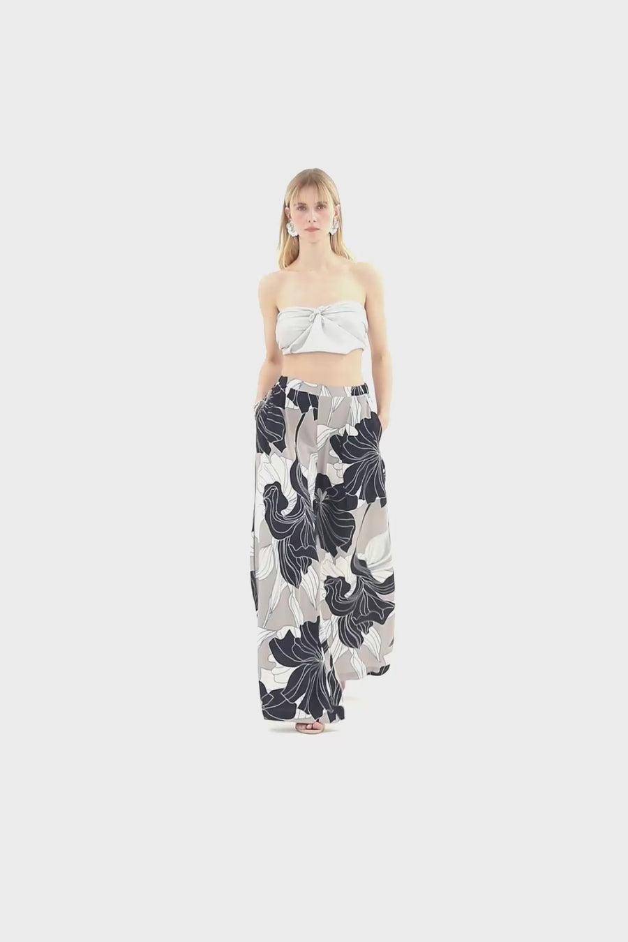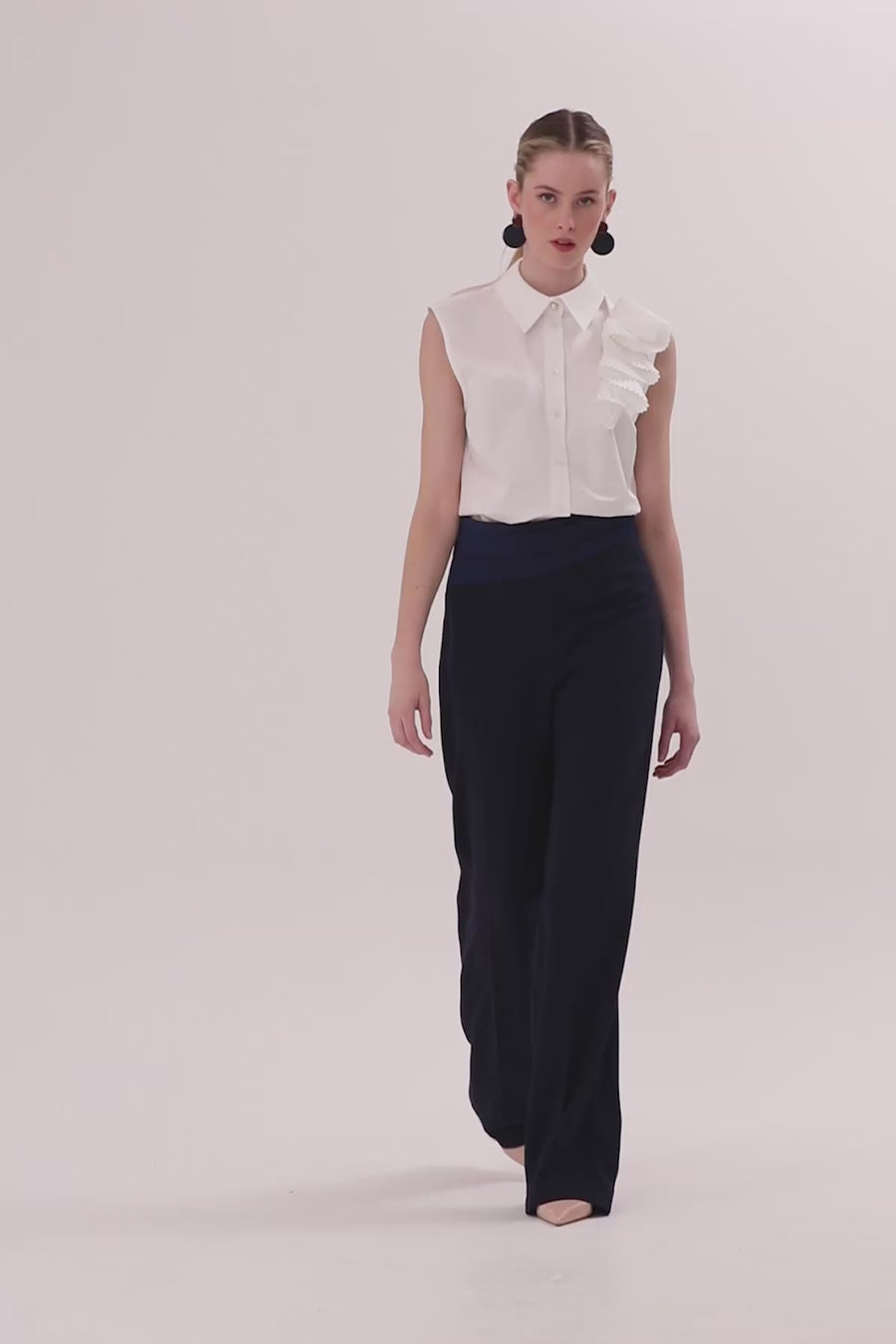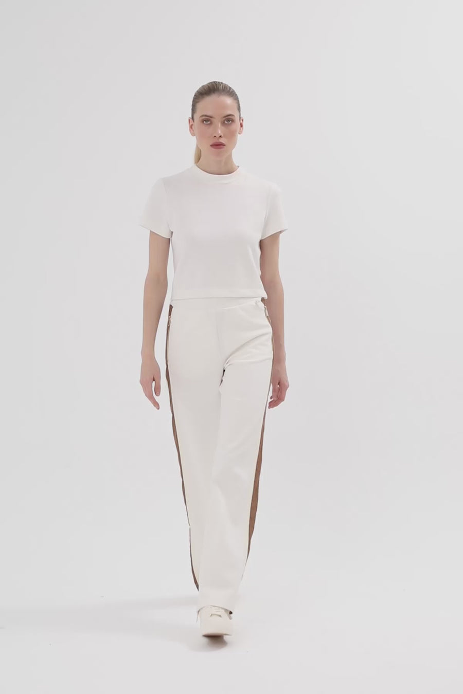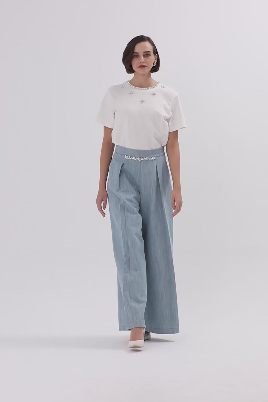 Pile Detaylı Bol Paça Dokuma Pantolon