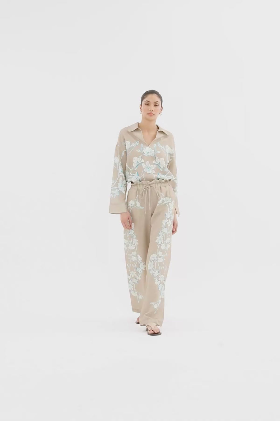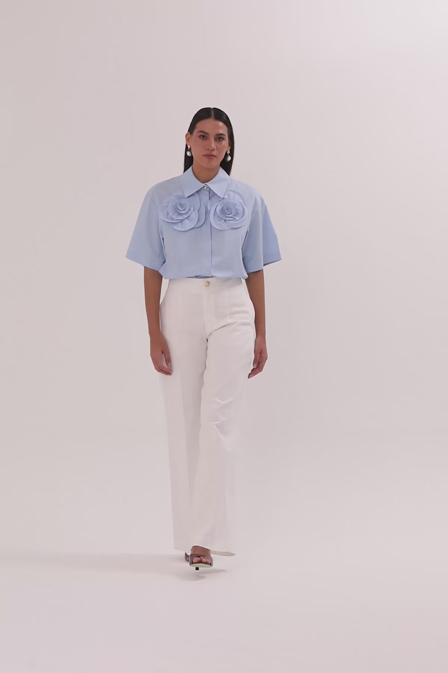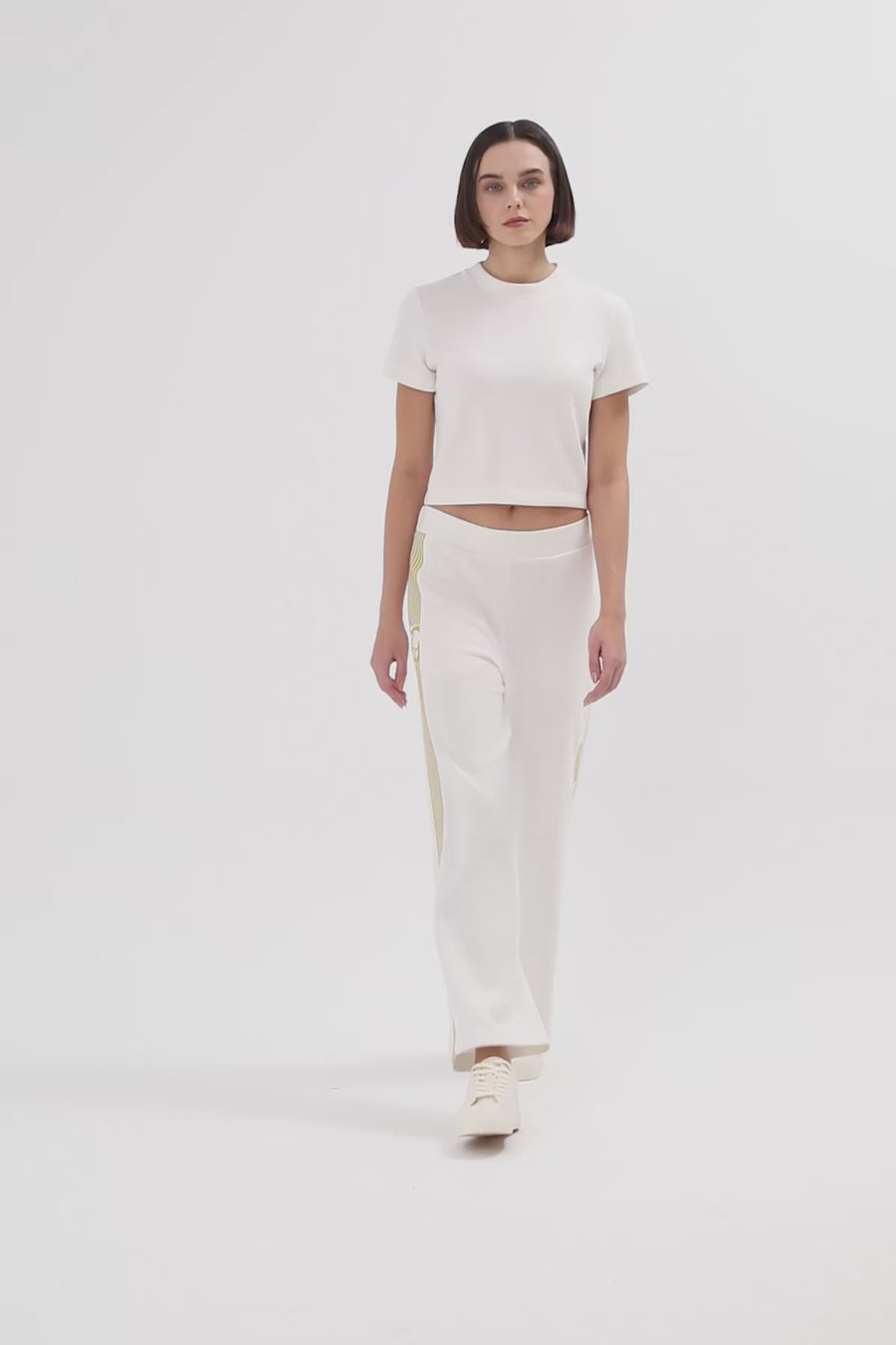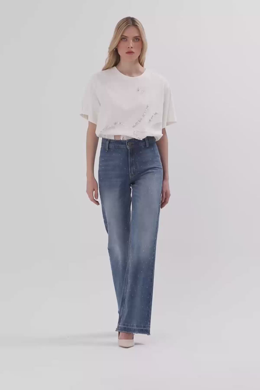 Pile Detaylı Bol Paça Dokuma Pantolon