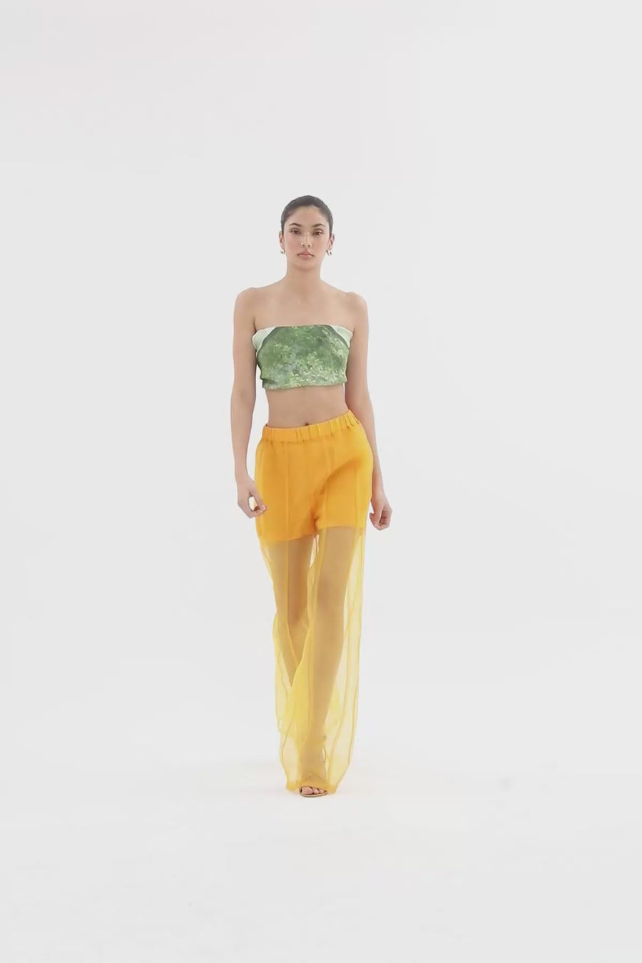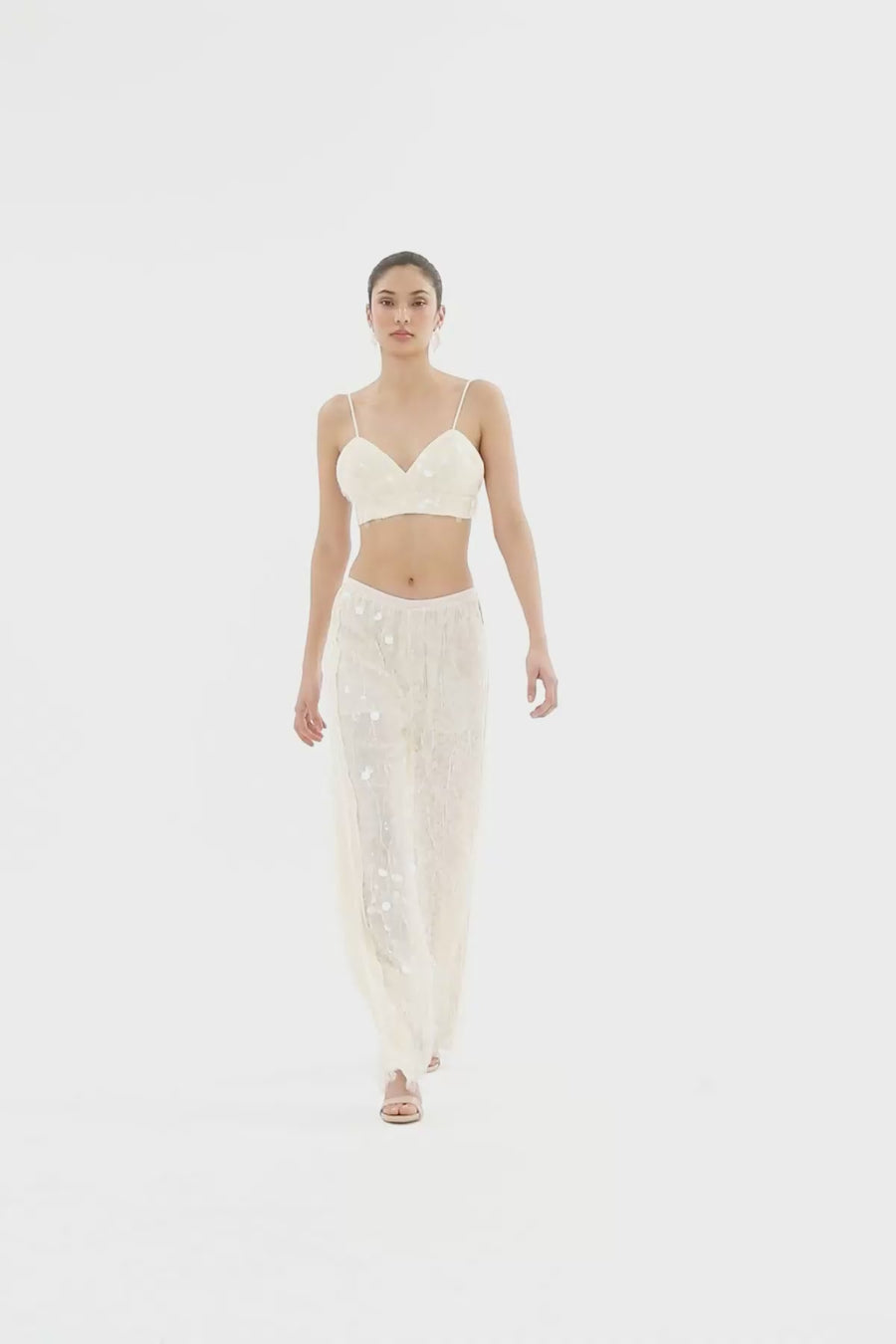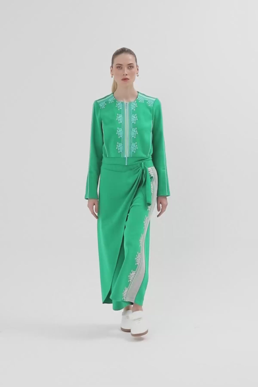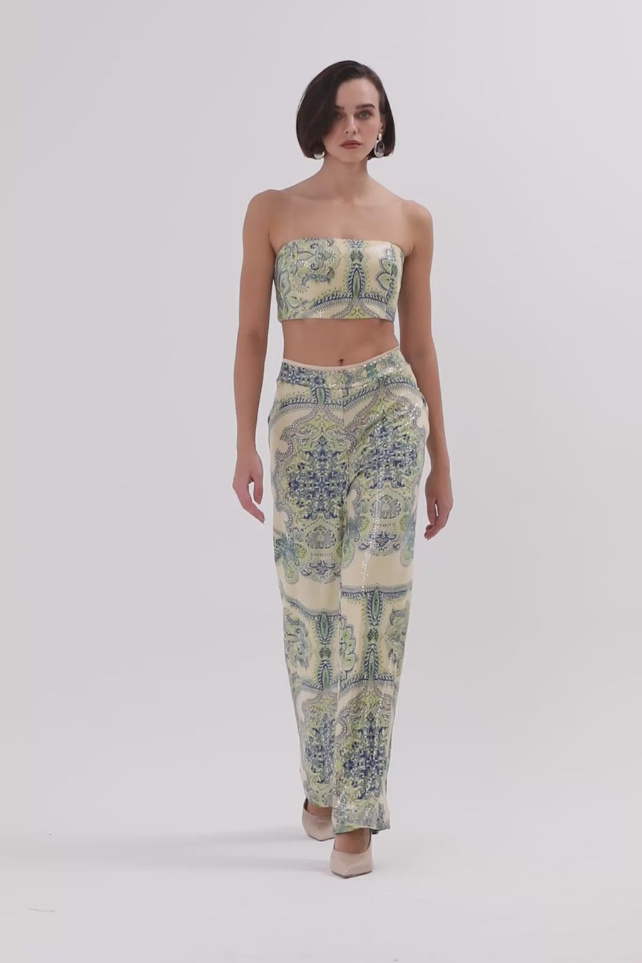 Pile Detaylı Bol Paça Dokuma Pantolon