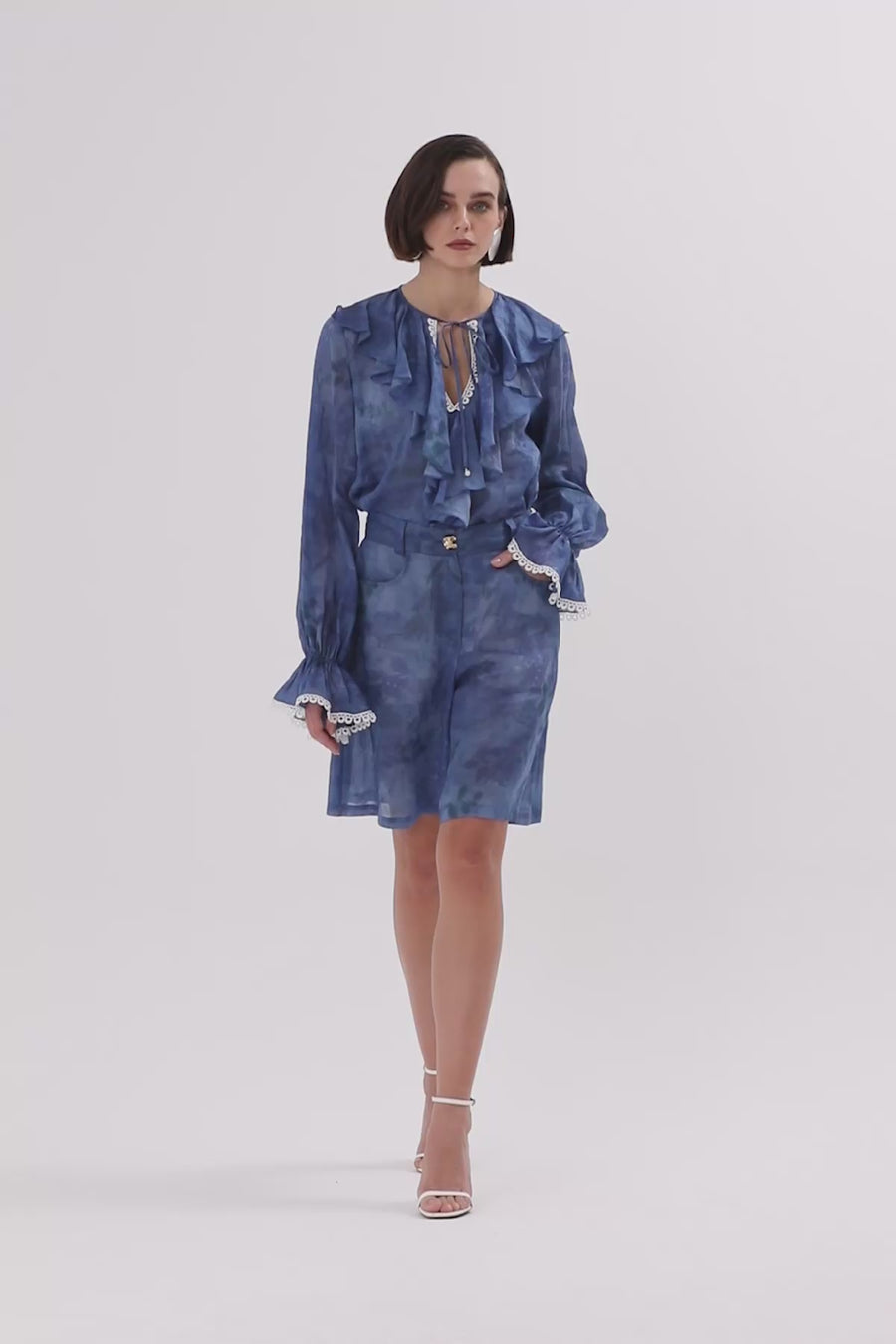 Fırfır Detaylı Ve Nakışlı Jean Şort