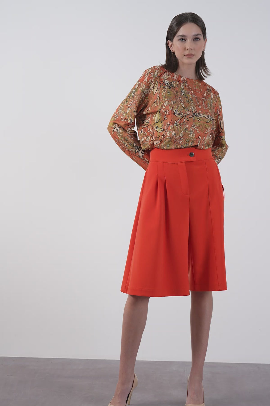Yanları Volan Detaylı Bağ Ucu İşlemeli Beli Lastikli Oranj Şort