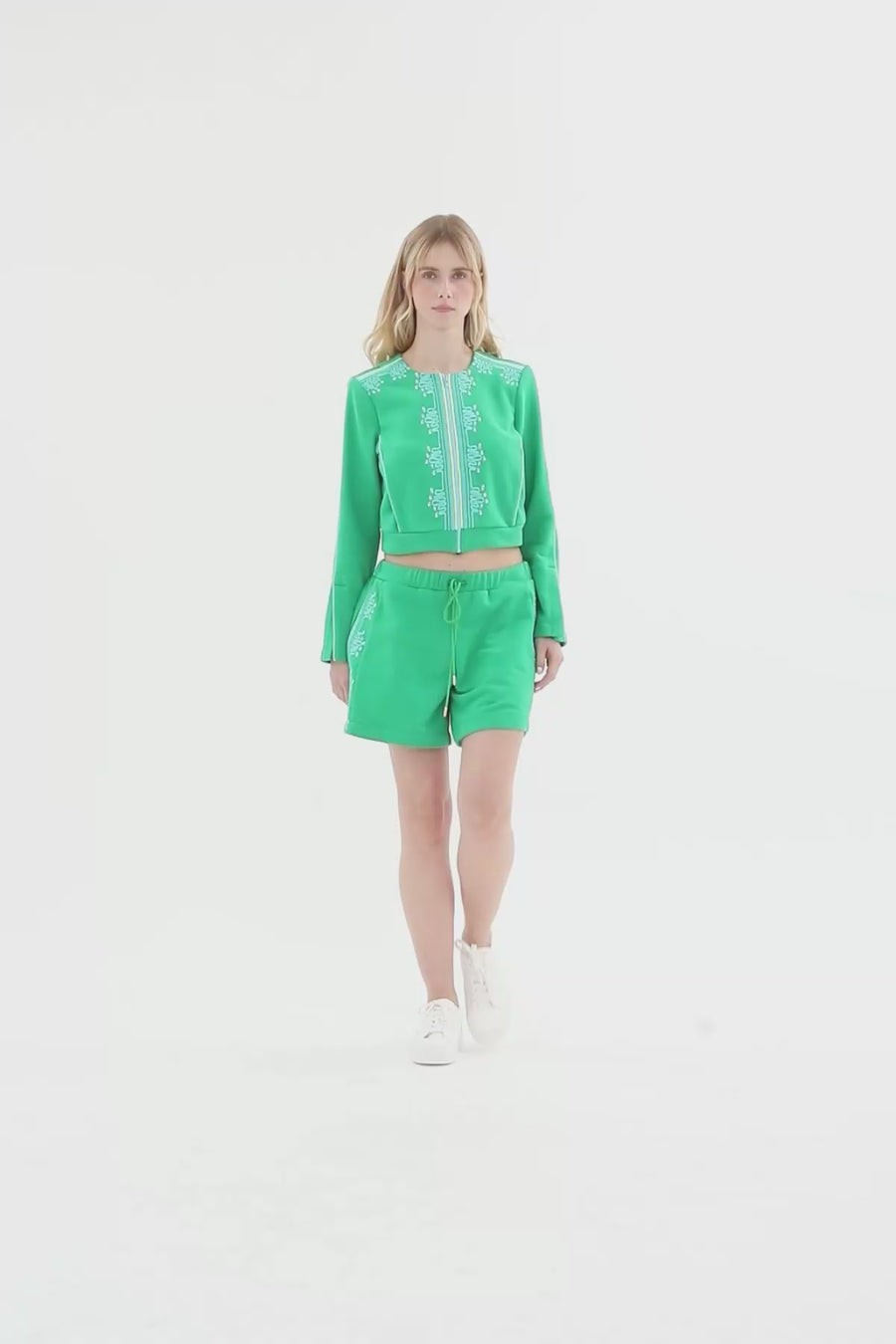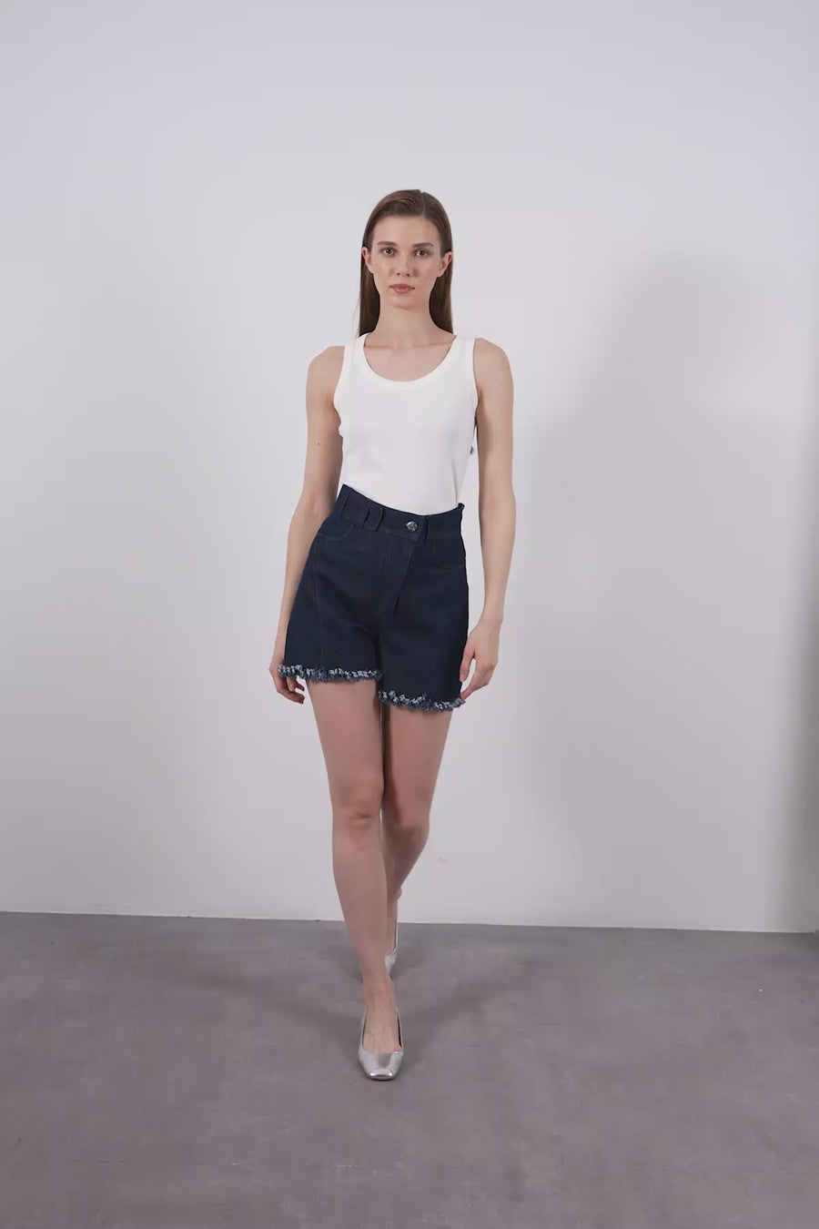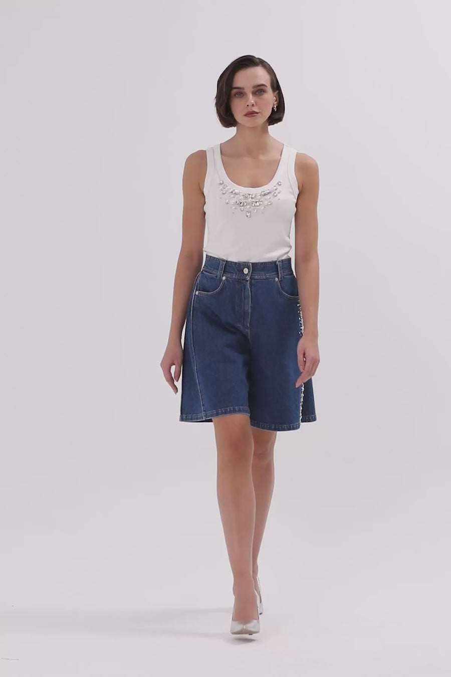 Cep Kenarları Boncuk İşlemeli Beli Lastikli Şort