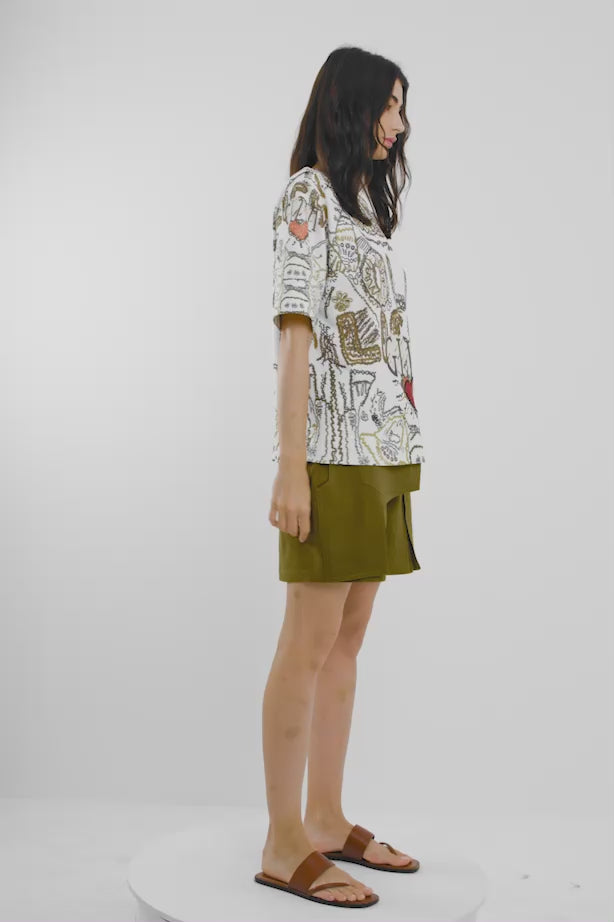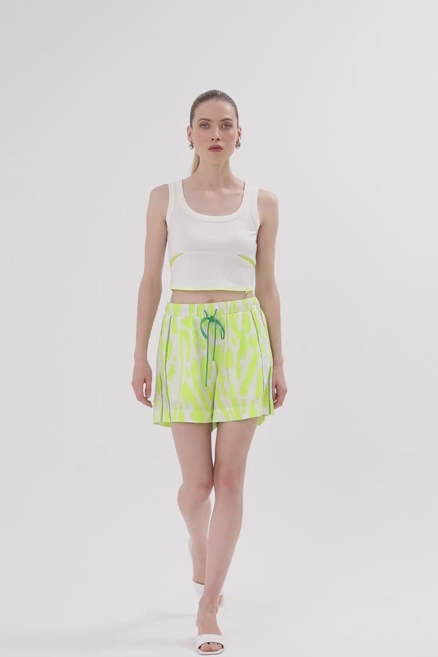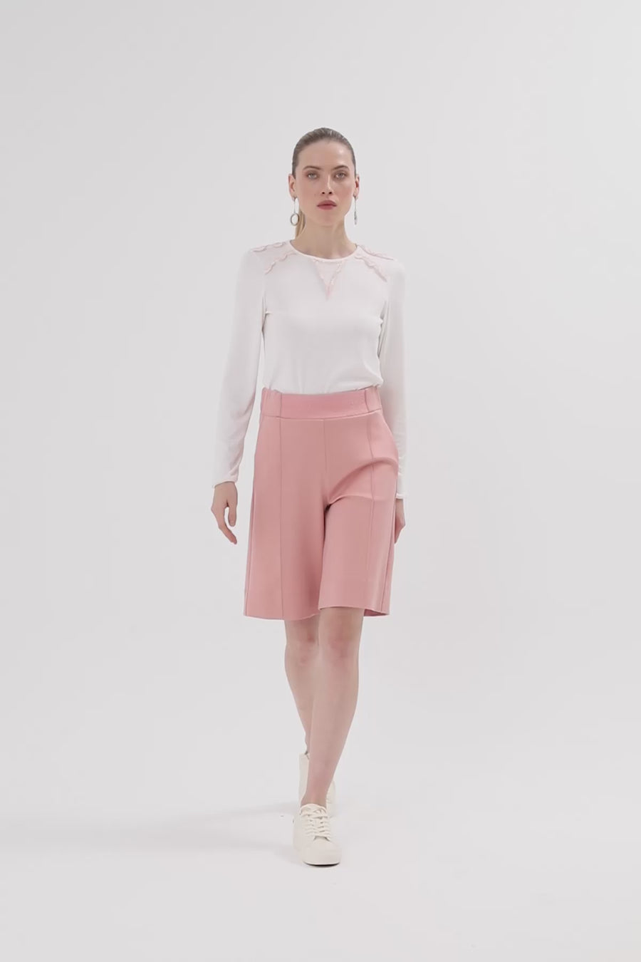 Cep Kenarları Boncuk İşlemeli Beli Lastikli Şort