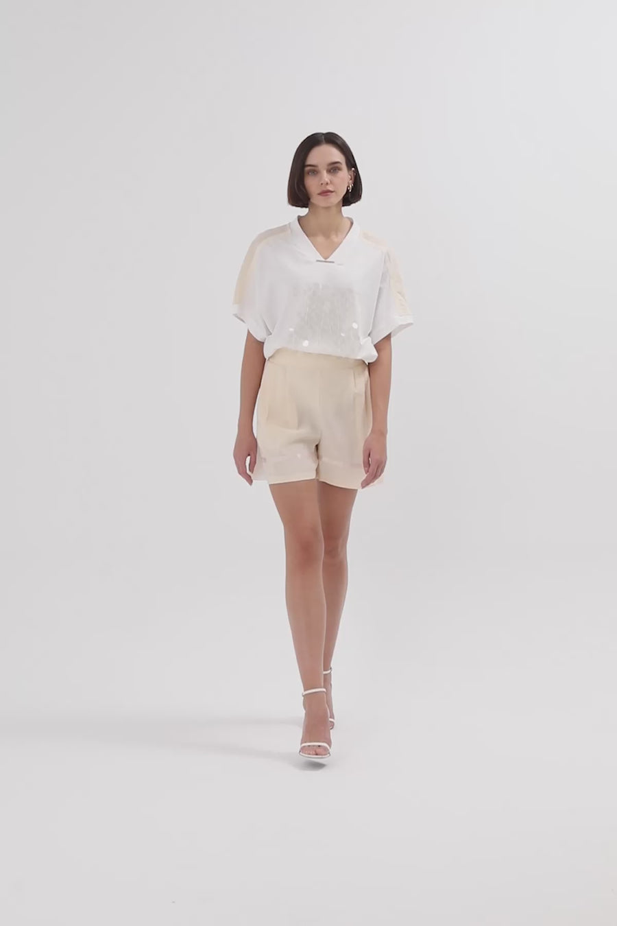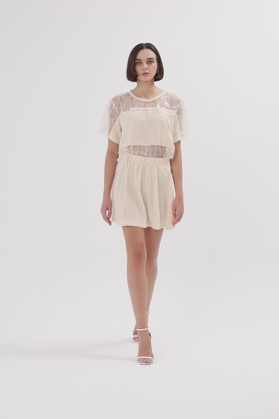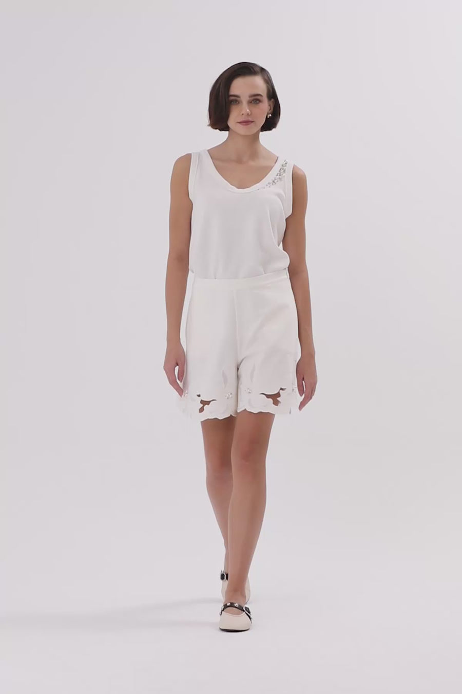 Dantel Detaylı Cep Kenarları Boncuk İşlemeli Şort